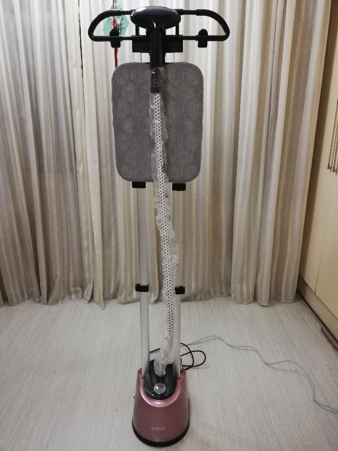 我一直都爱买买买,又特别喜欢真丝、棉麻制品,此类衣物透气舒适,但是有个通病一一易皱,每次穿过特别是洗过之后就得熨烫,所以熨斗成为我生活必备品,我家中有个老式熨斗,每次使用很麻烦,发热特别慢,有些地方比如肩头、领口等边边角角不便熨烫,此次申请到的苏泊尔家康专卖店挂烫机我一用就爱上了,太方便了! 首先包装严实,是印有相关信息的苏泊尔专用厚实纸盒,打开外纸盒,里面整齐码放着所有挂烫机全套设备:主机、衣架、支撑杆、熨衣板、说明书等。 通过安装视频我很快就独立安装成功了挂烫机,此款机器整体颜值高,主机为玫瑰金,色泽优雅大方,设计简洁时尚,细节精致,使用方便,出汽迅速,各种面料材质衣物,各类季节衣物都适用。平烫精致、挂烫随心面面俱到!