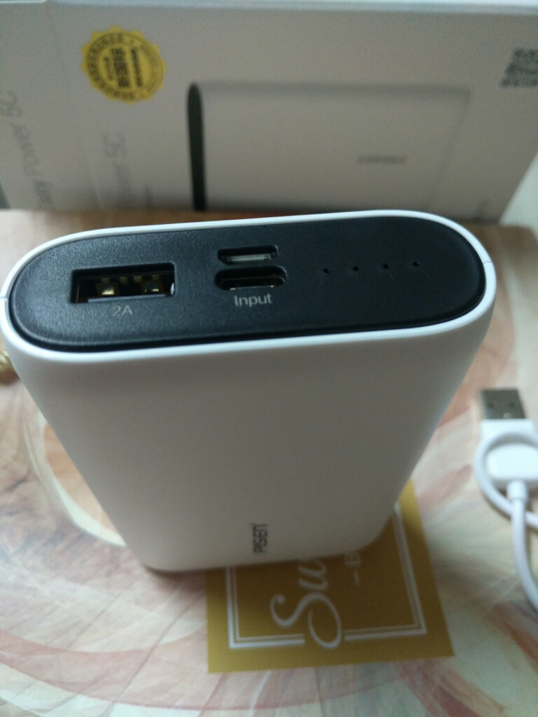 品胜是众所周知、值得信任的移动电源品牌,移动电源的颜色是白色,干净整洁,容量有1万毫安,还送了一个收纳袋。
