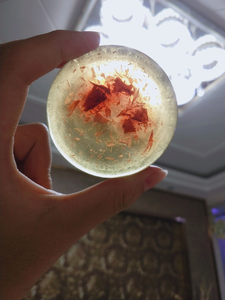 香皂皂体通透。有一种很干净的,小清新的感觉在的,内里含的东西看的一清二楚,有趣好玩的感觉,会让人忍不住要去用它