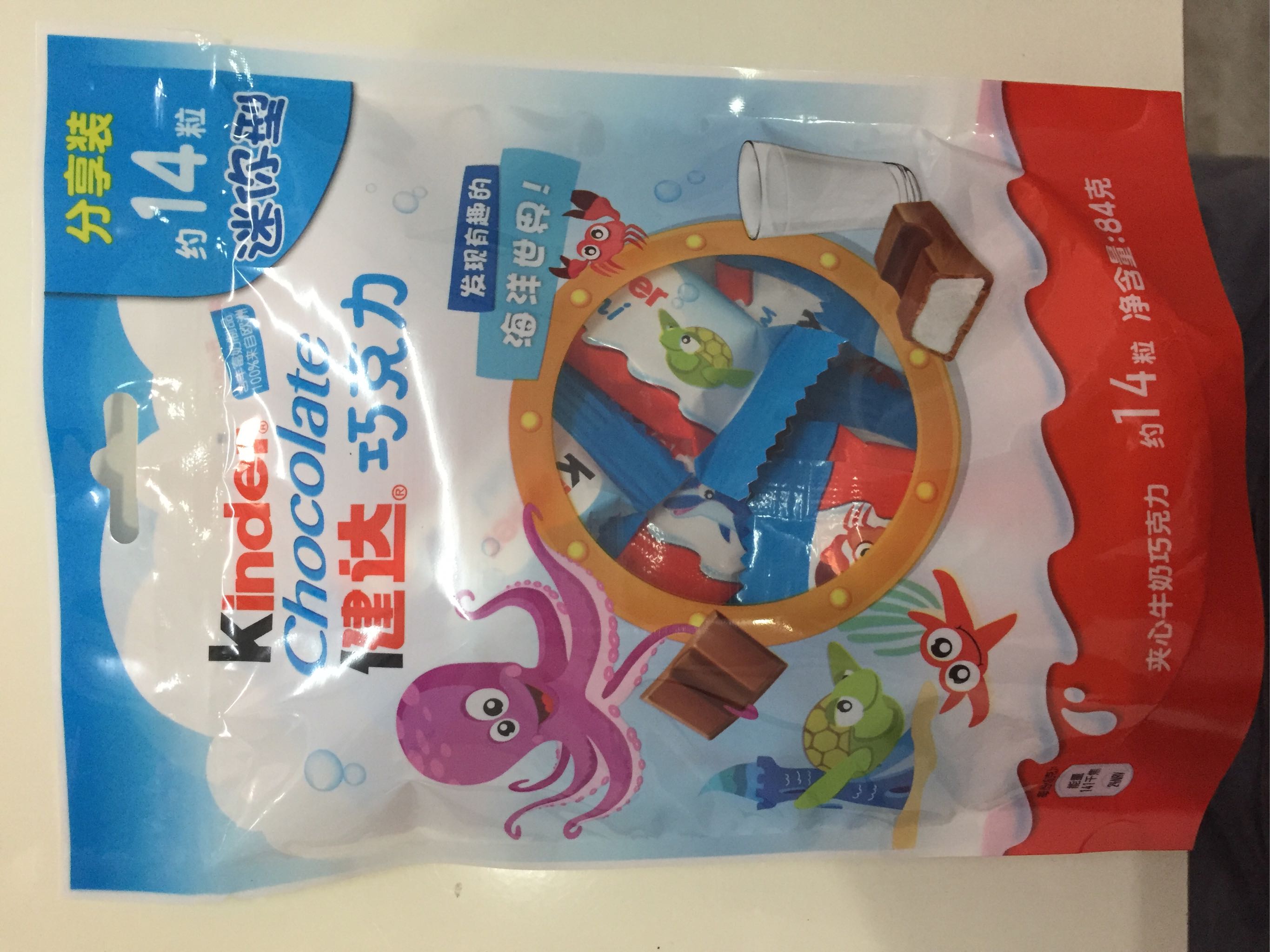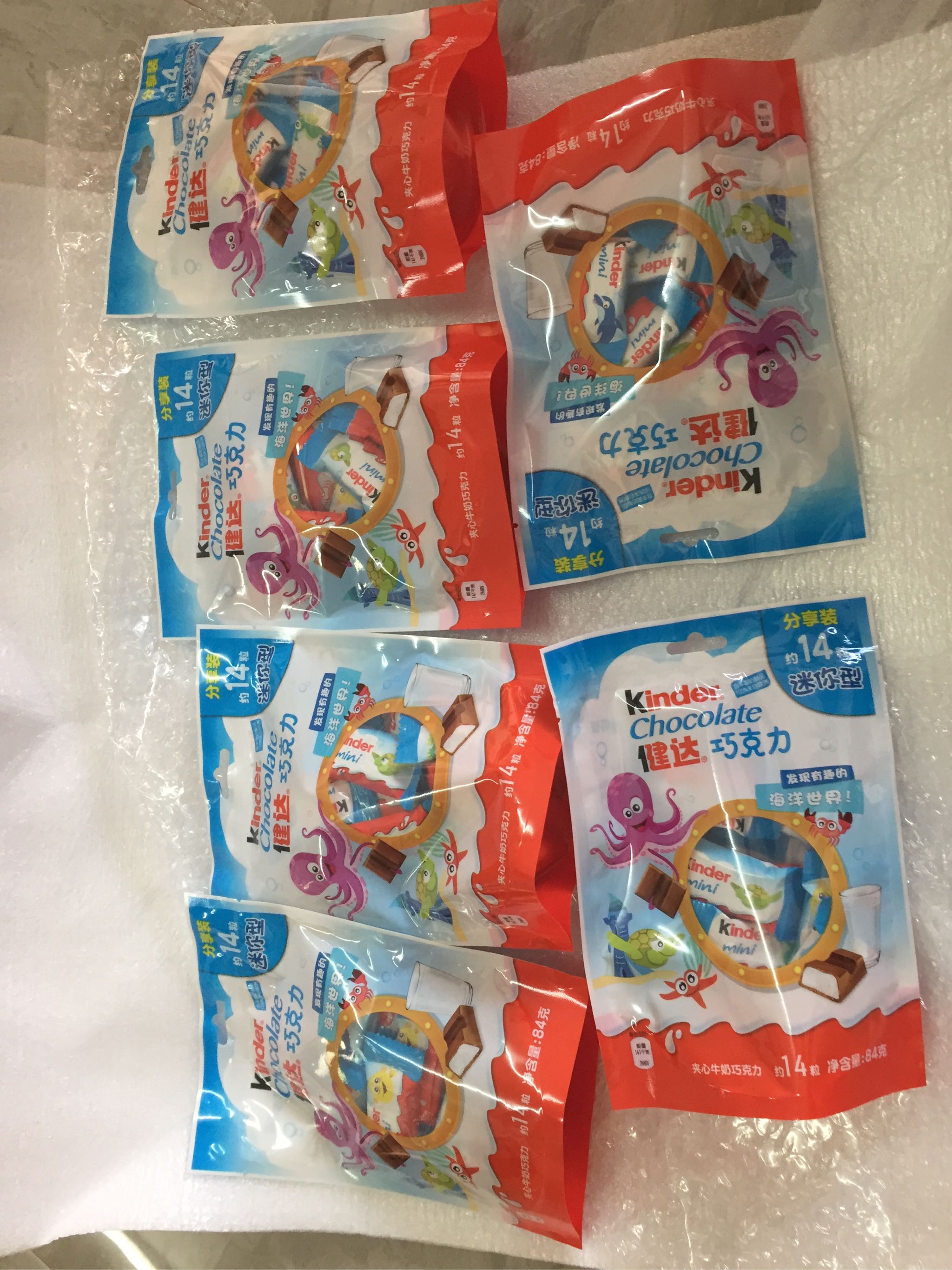 满满6大包,每包14小包,健达是挺厚道,曾经收到试用品,只有图片说明的一半。健达这个牌子,广东应该很多人跟我一样,真是从小吃到大,跟金莎同公司,算是比较高大上的平民老牌子了,小时候就没少吃出奇蛋,一次满足你三个愿望,哈哈,以前出奇蛋还是纸包装,里面巧克力包着玩具。现在我女儿也没少吃,都算是健达的老粉丝了。