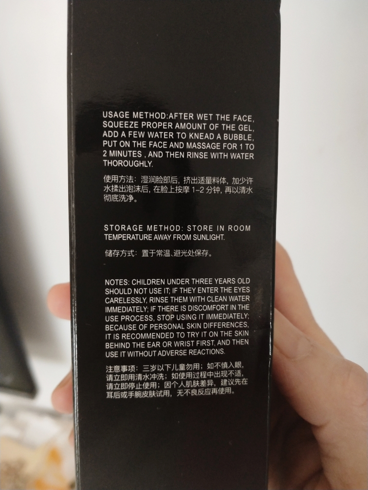 包装盒上有中英文对照的详细使用方法,成分,功效,添加了鱼子精华,具有洁净,水润,清爽,控油的效果。