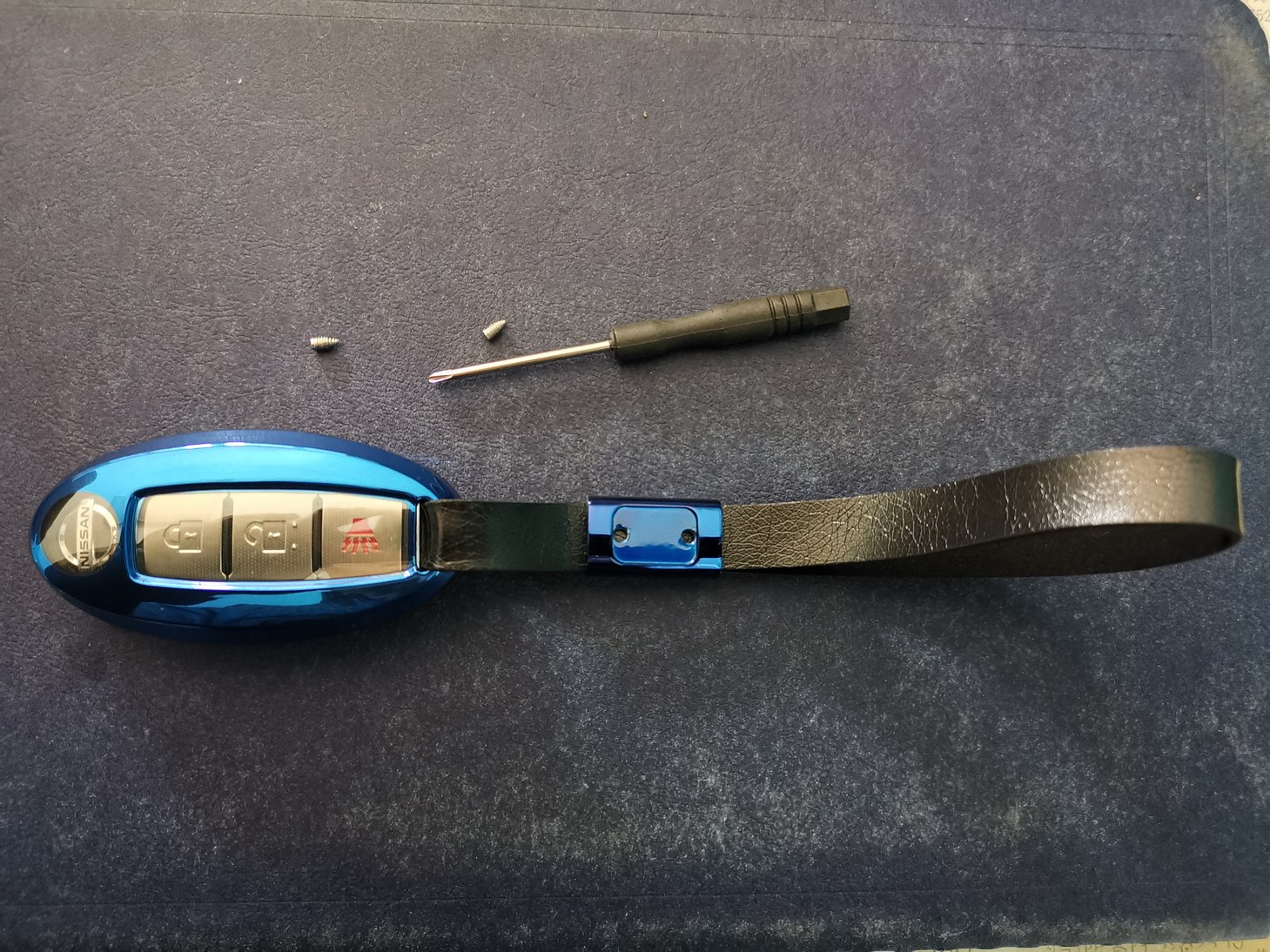 螺丝刀和螺丝的用处是固定皮绳,我没有用。另外还有两个日产的标志贴纸,我看了一下应该是贴在另外一款金属扣有个圆形位置可以贴,我这个是另一款皮绳,所以没地方贴,也就没贴了。