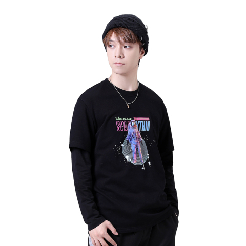 R.Q.G2025新款纯棉长袖T恤男春秋款休闲假两件男士体恤卫衣衫潮t