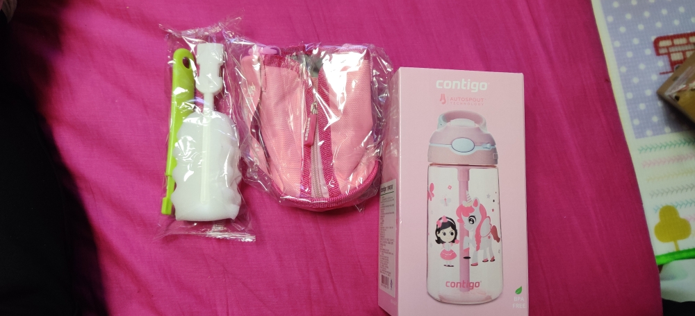 美国Contigo康迪克儿童卡通防漏tritan吸管杯宝宝水杯颜色图案宝宝很喜欢。Tritan(共聚聚酯)食品级材料,安全无毒,吸管杯的吸管最好要选择硅胶材质,安全性高。胶鸭嘴口保护宝宝牙齿和牙龈安全性高,双层防漏宝宝怎么拿都不漏安心,450ml超大容量走到哪里喝到哪了。唯一缺点不是重力球设计。