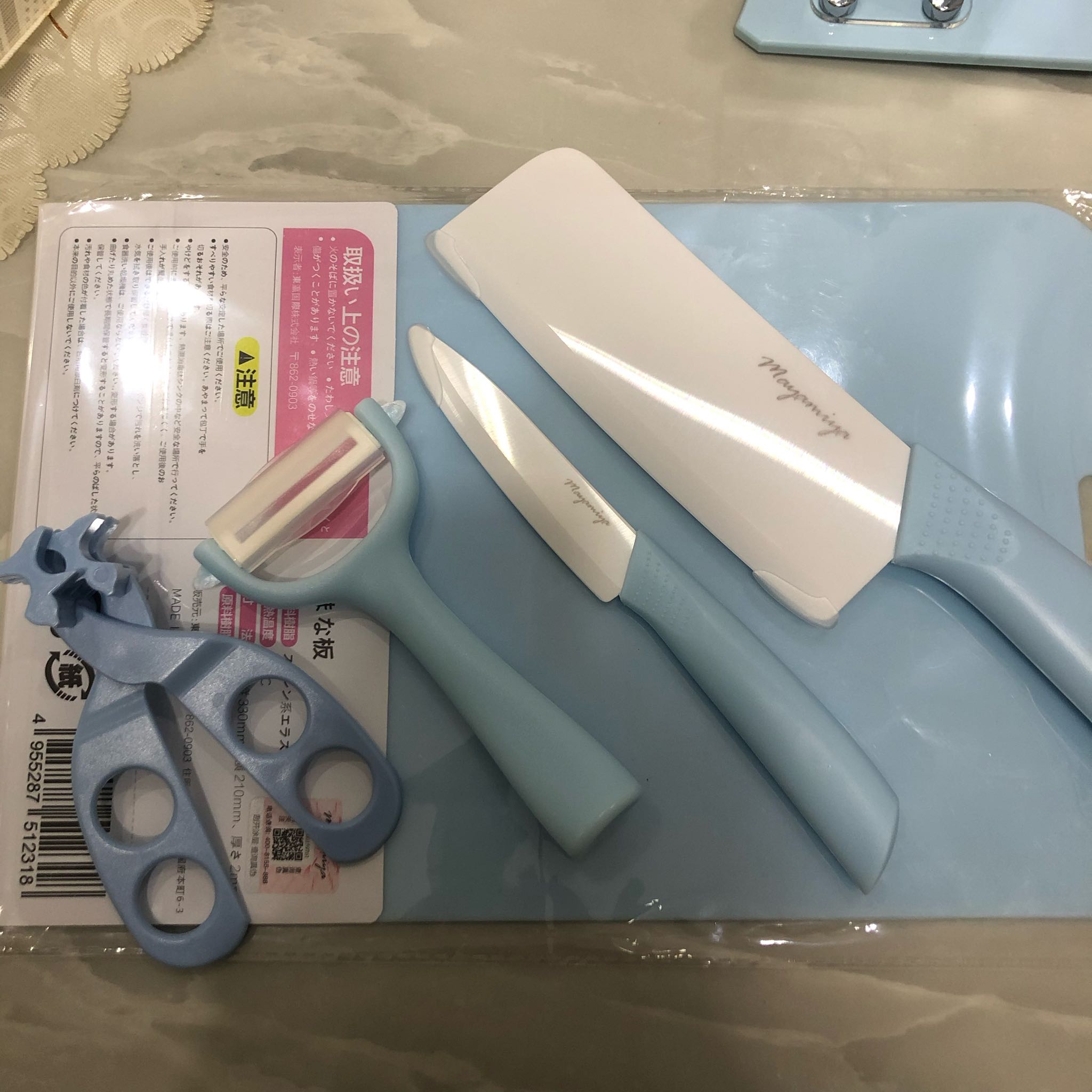 刀具都是陶瓷的,白色的,很漂亮。整套刀具都质感很好,做工也很精细,所以很放心给宝宝做东西。