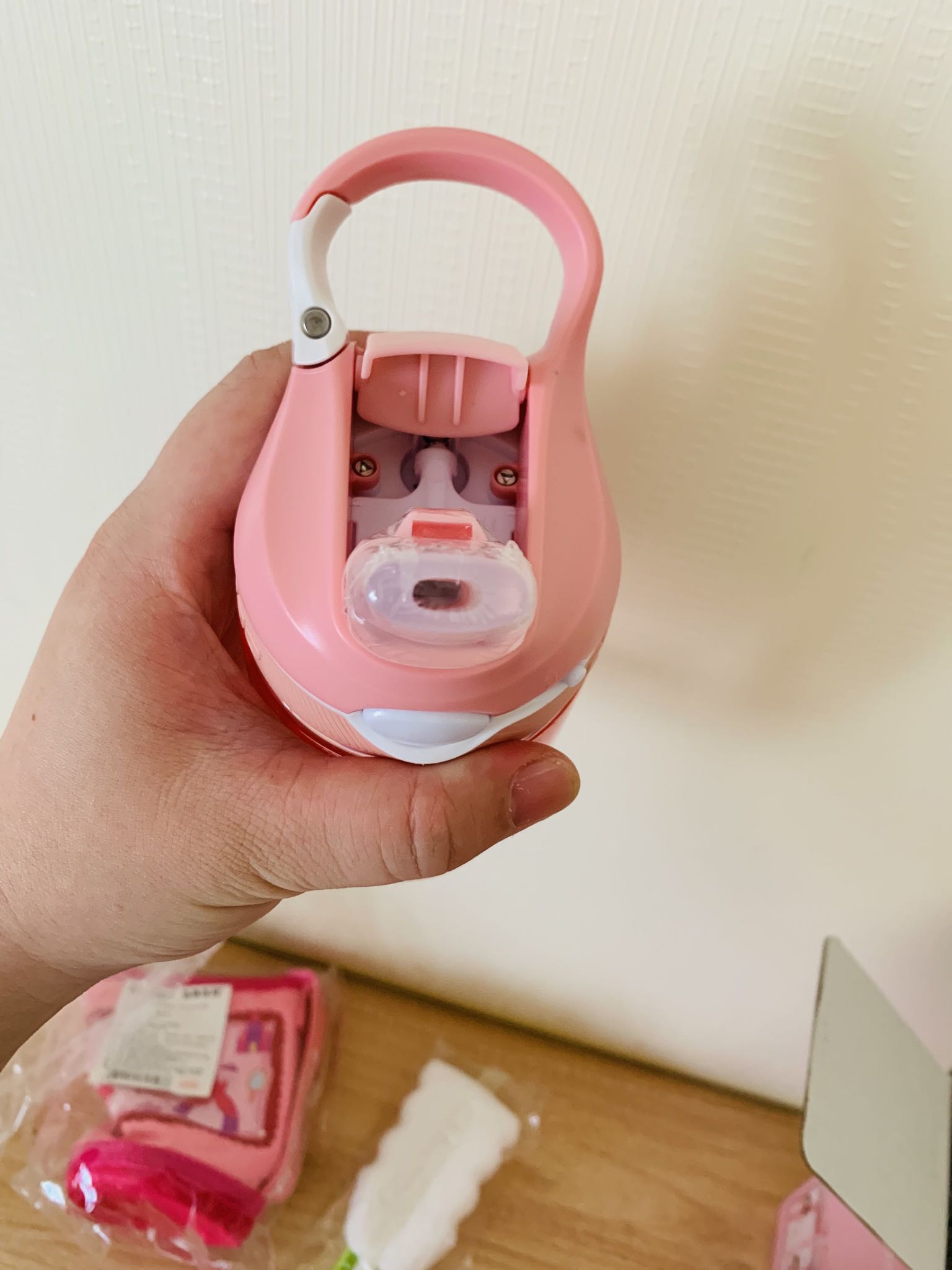 锁扣是我选择他的原因之一。出门宝宝喝水必备啊。可以挂在婴儿车、背包,一点也不鸡肋。稳固性好