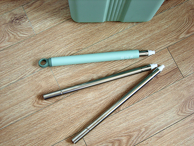 这款平板拖把的配置非常简单,占地面积也并不大,主体就是采用了几节不锈钢拖把杆组合而成。先把第一个卡扣固定在拖板上,剩下的部分只需要把它们依次对接好拧紧就可以了,安装方式简单易懂。而且在手柄处采用了贴心的泡沫棉包裹设计,手感更加安全舒适,避免在使用的时候伤到手。