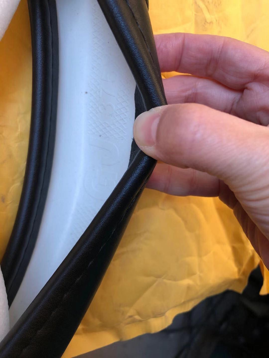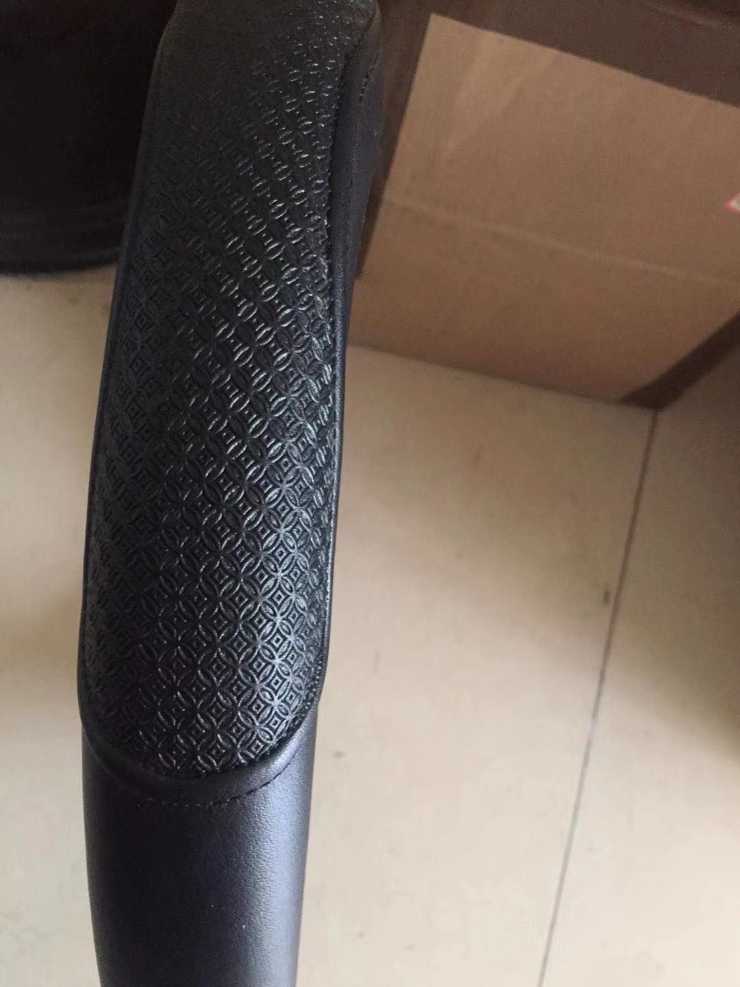 方向盘套很快到货了,默认发的咖啡色,看起来朴素大方,方向盘套是整张牛皮制作,看到接口缝合细致,花纹凹凸有致,设计精巧,手感柔软舒适,转动方向盘时很容易控制,不打滑。