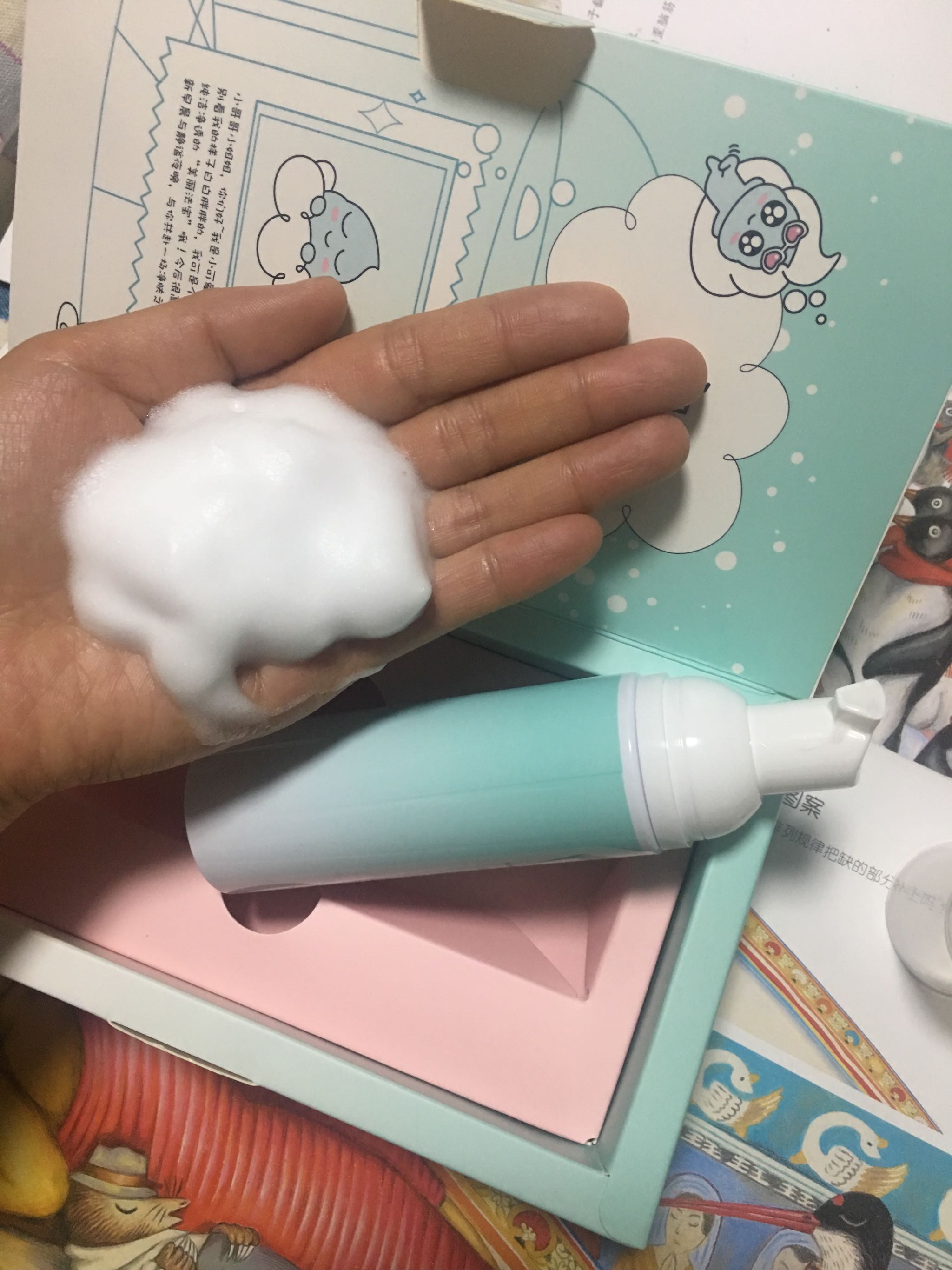 挤出来是轻盈的细腻泡沫,泡沫比以前用的要稀一些,会有不错流动性