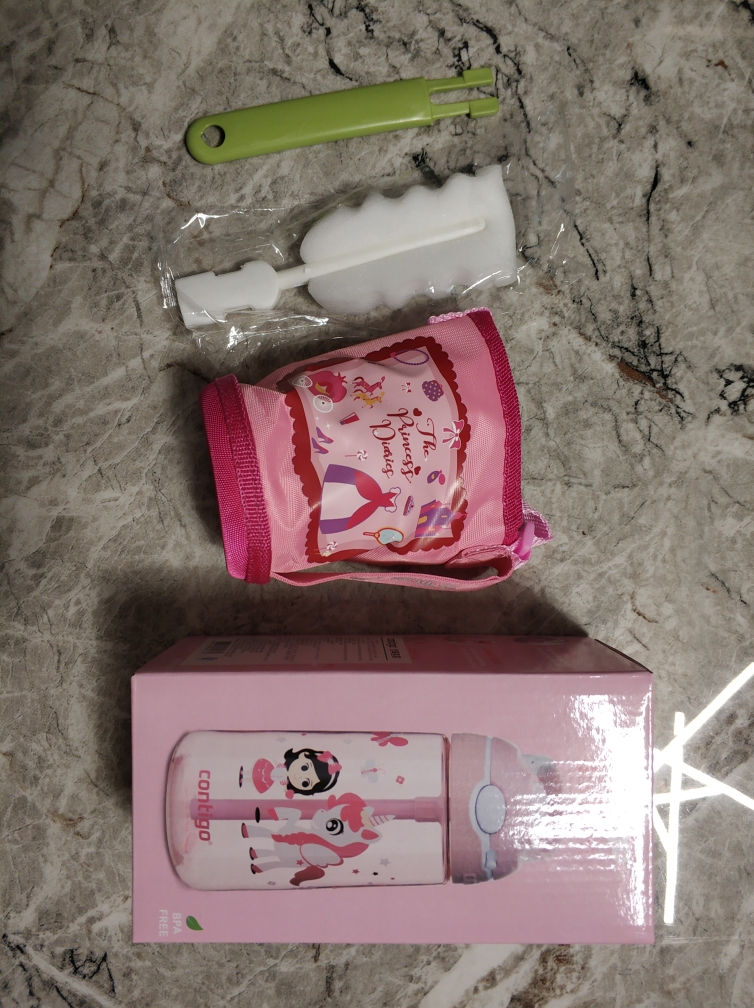 康迪克是专业儿童水杯制造品牌,有幸得到这次试用,可惜咱家是男娃,这次得到的又是女孩色系,写完报告又得送人了,商家配套赠送了同色系的杯套,还有洗杯子的杯刷