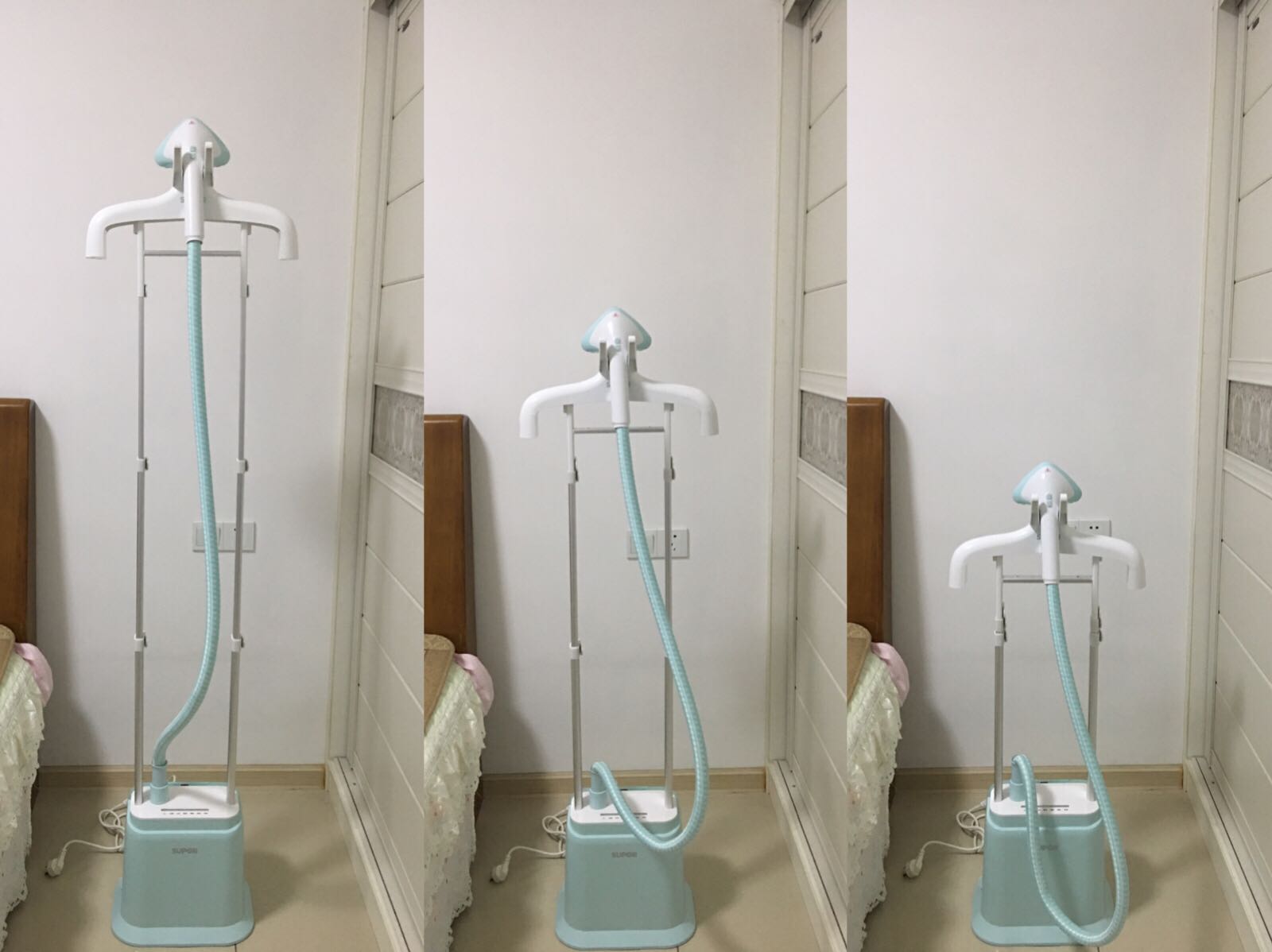 首先,苏泊尔这款挂烫机可以拉伸三节,家里没卷尺,只能站在同一距离来拍照对比了,三节全拉伸的高度有160cm+的样子,每一节拉伸都很顺畅,不会有卡壳的情况,而且不用的时候收纳起来也很方便,不占地方。