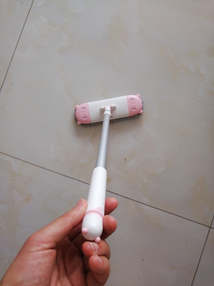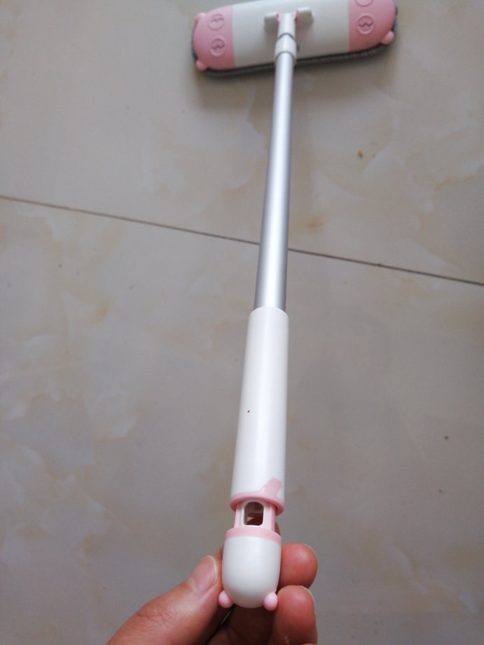 这种小拖把看了好久。家里孩子两岁,每次干家务的时候,总是跟我抢拖把。一直想买个给她,既可以锻炼孩子的能力,又可以减轻负担,一举两得。这个拖把是伸缩杆的,可以缩短,也可以加长,很灵活。两块拖布头,可以换洗。比较人性化。拖把的周边是软硅胶的,大概是怕孩子拖地没有轻重,可以保护墙面。
