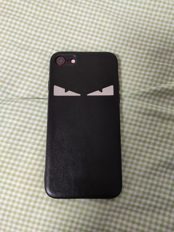 背面应该为PU皮的,和软边结合的丝丝入口,手感很舒适,而且不会粘指纹。恶魔眼很凶狠哦