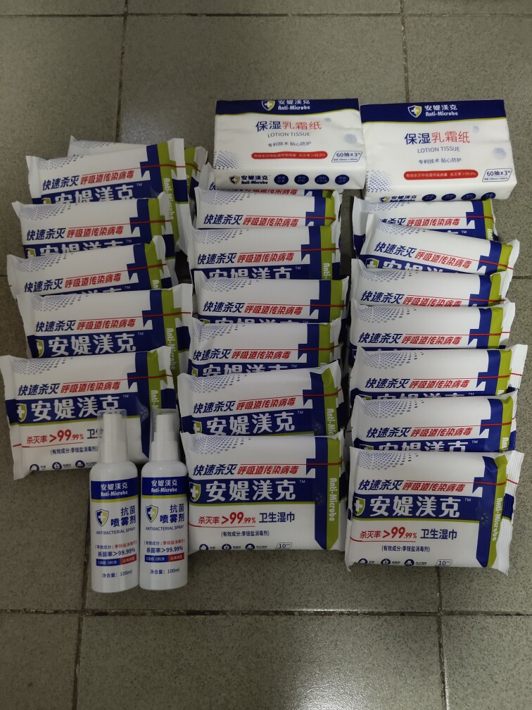 收到了20包消毒湿巾,还附赠了其他两种杀菌产品,相当不错。