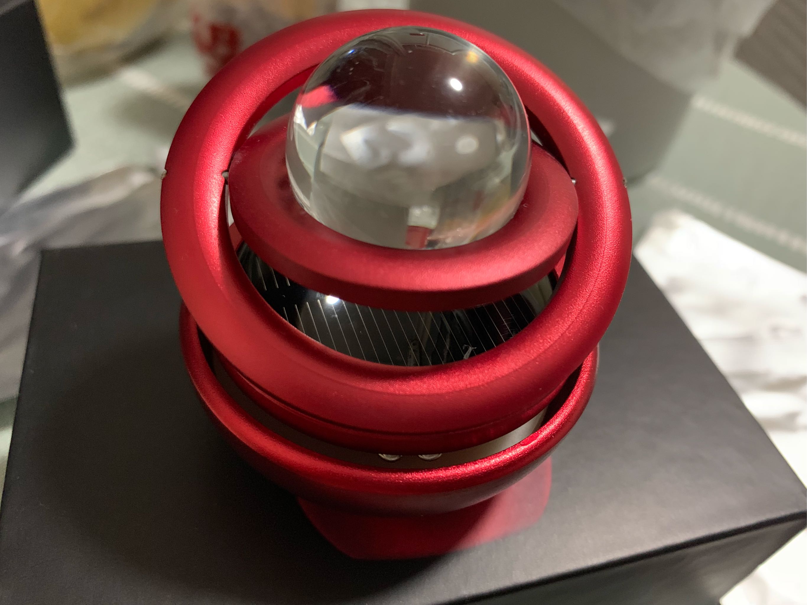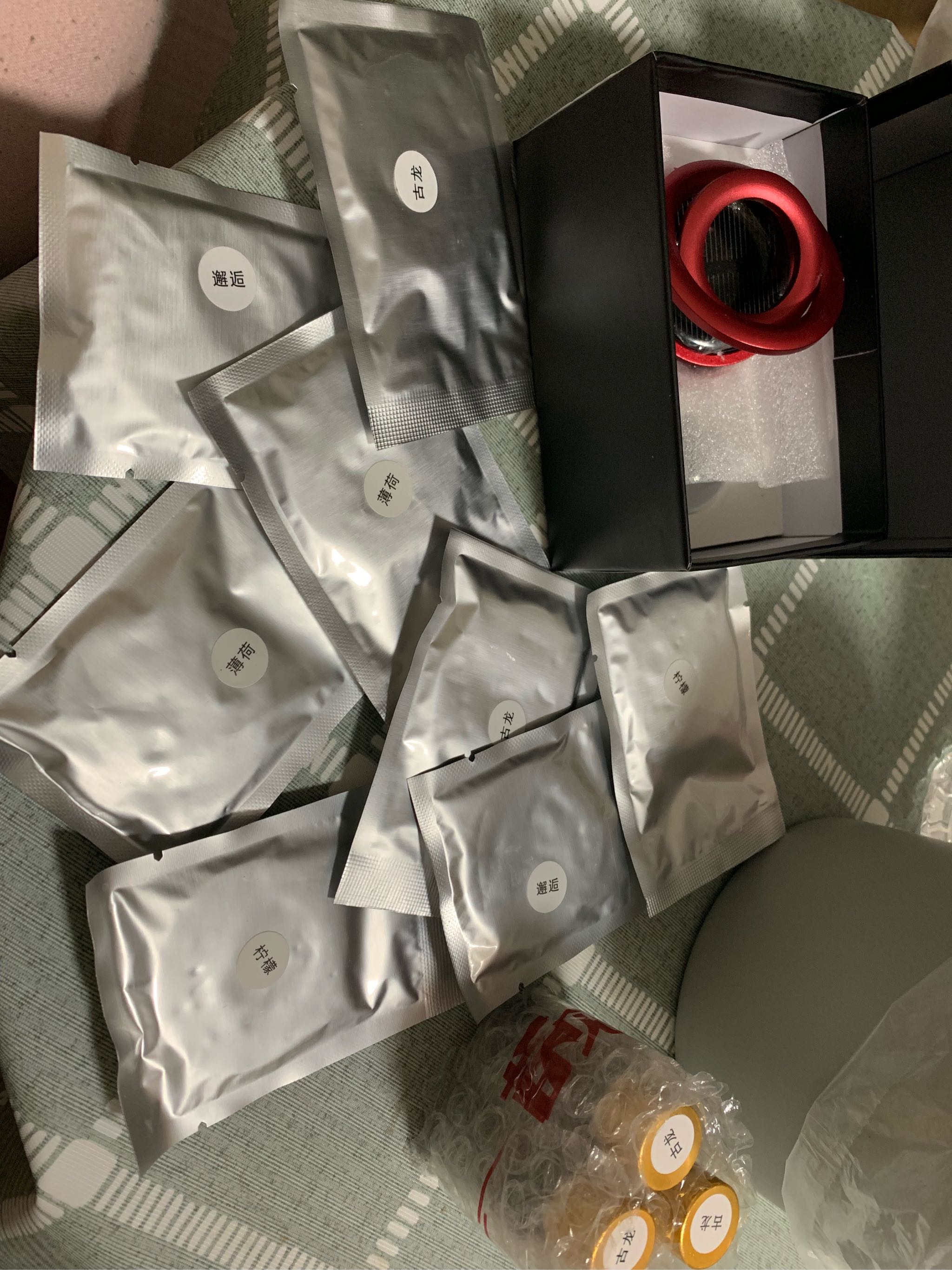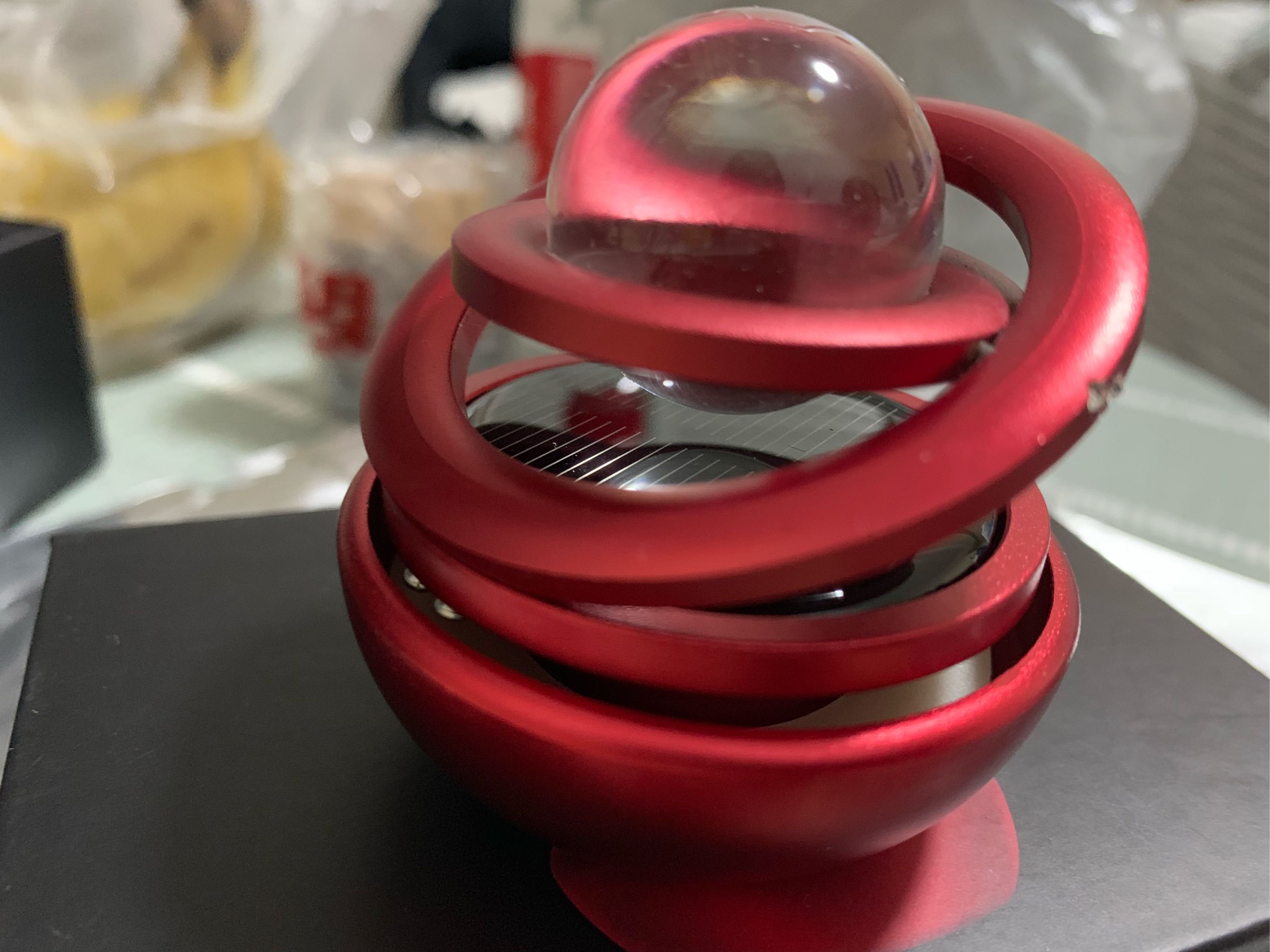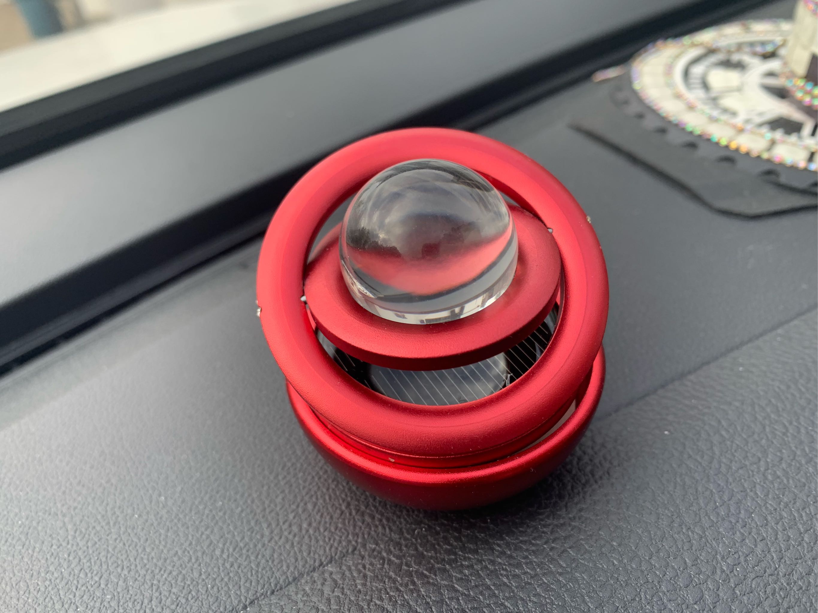 整体外观很大气,一共有四种味道,我先用的薄荷味道,在车里放了两天,超好闻的,有一种淡淡的香味,有点类似小时候吃的薄荷糖,但不腻,女生应该都会喜欢,反正我超爱!妹妹上车都说,哇车里味道也太好闻了吧,香香甜甜的感觉。其他味道还没试,迫不及待的想都试试了。外观也比较大气,拖住水晶球的圆框是会转动的,质量也出乎意料,手感很好,沉甸甸的,不是塑料材质,应该是金属材质的。产品还一共有8包4种不同味道的香薰片,分别有薄荷、柠檬、邂逅、古龙四个味道,还有三瓶香薰,量非常充足,估计一年都不需要再买新的车载香薰了,非常的划算!