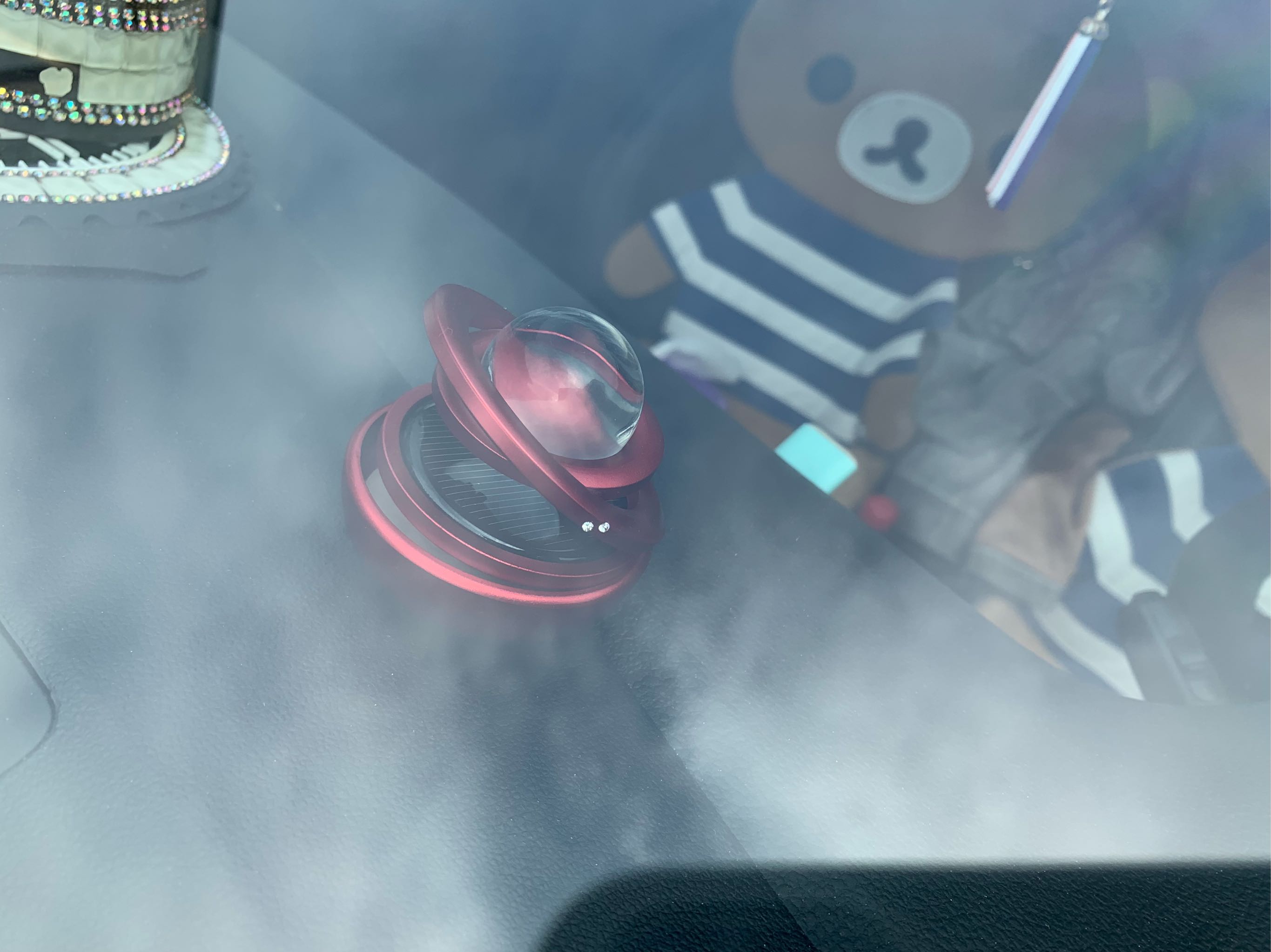 这是从车玻璃外面拍的,可以看到放在车台上很精致