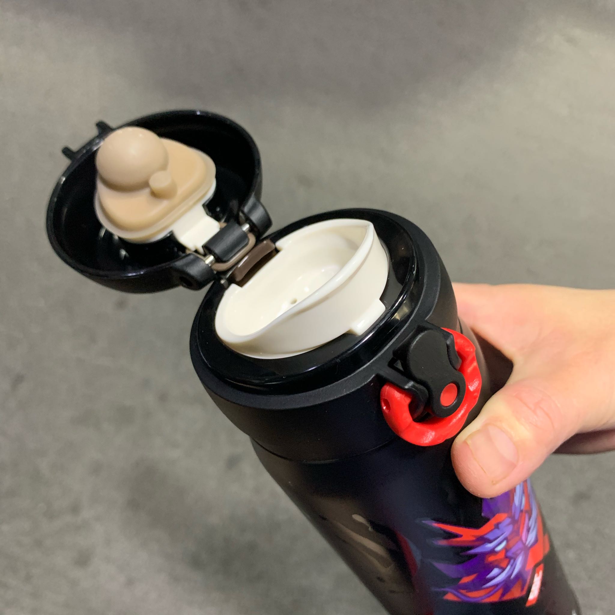 杯盖的扣子比较紧实 可以锁住杯盖也挺方便