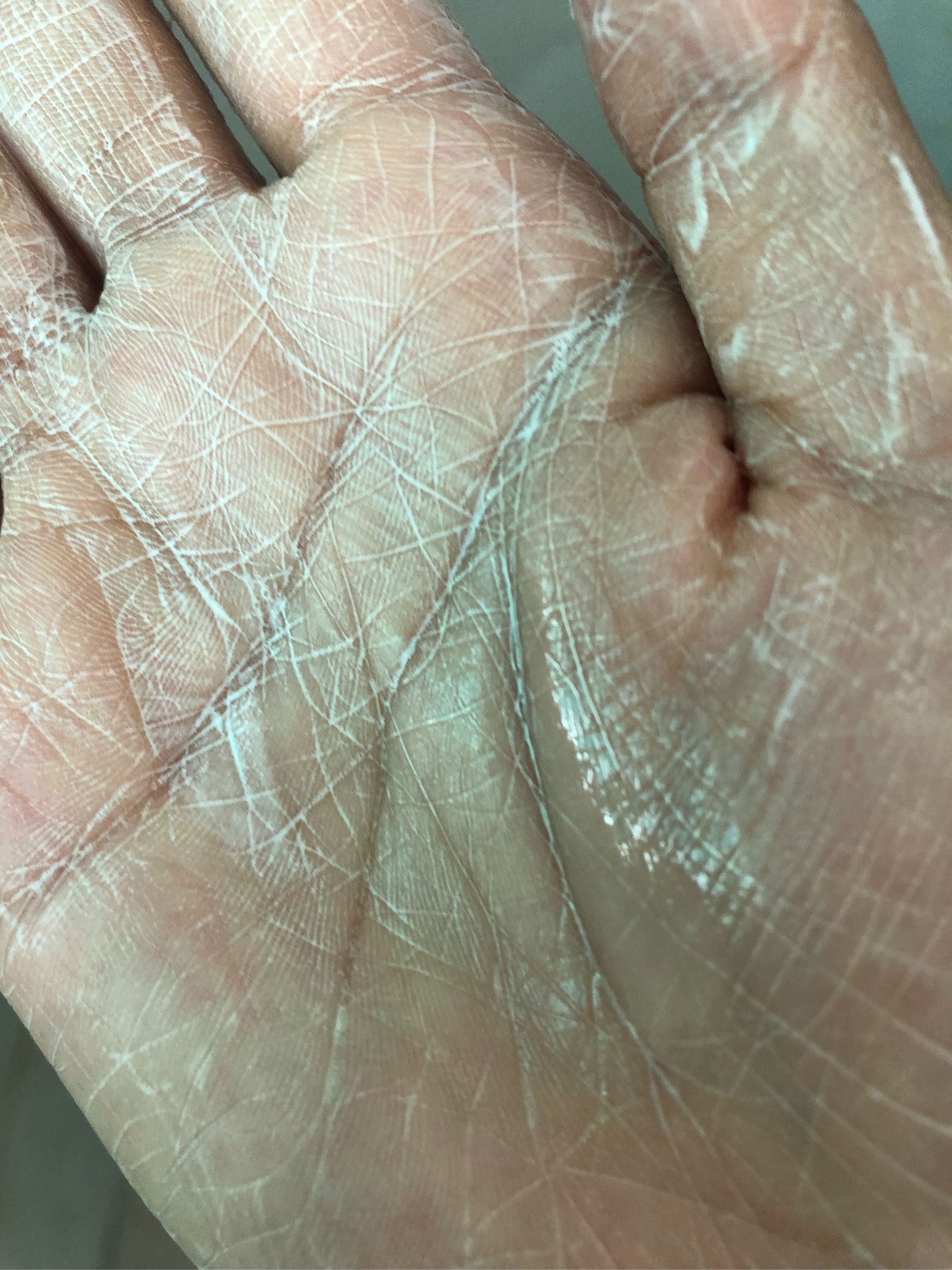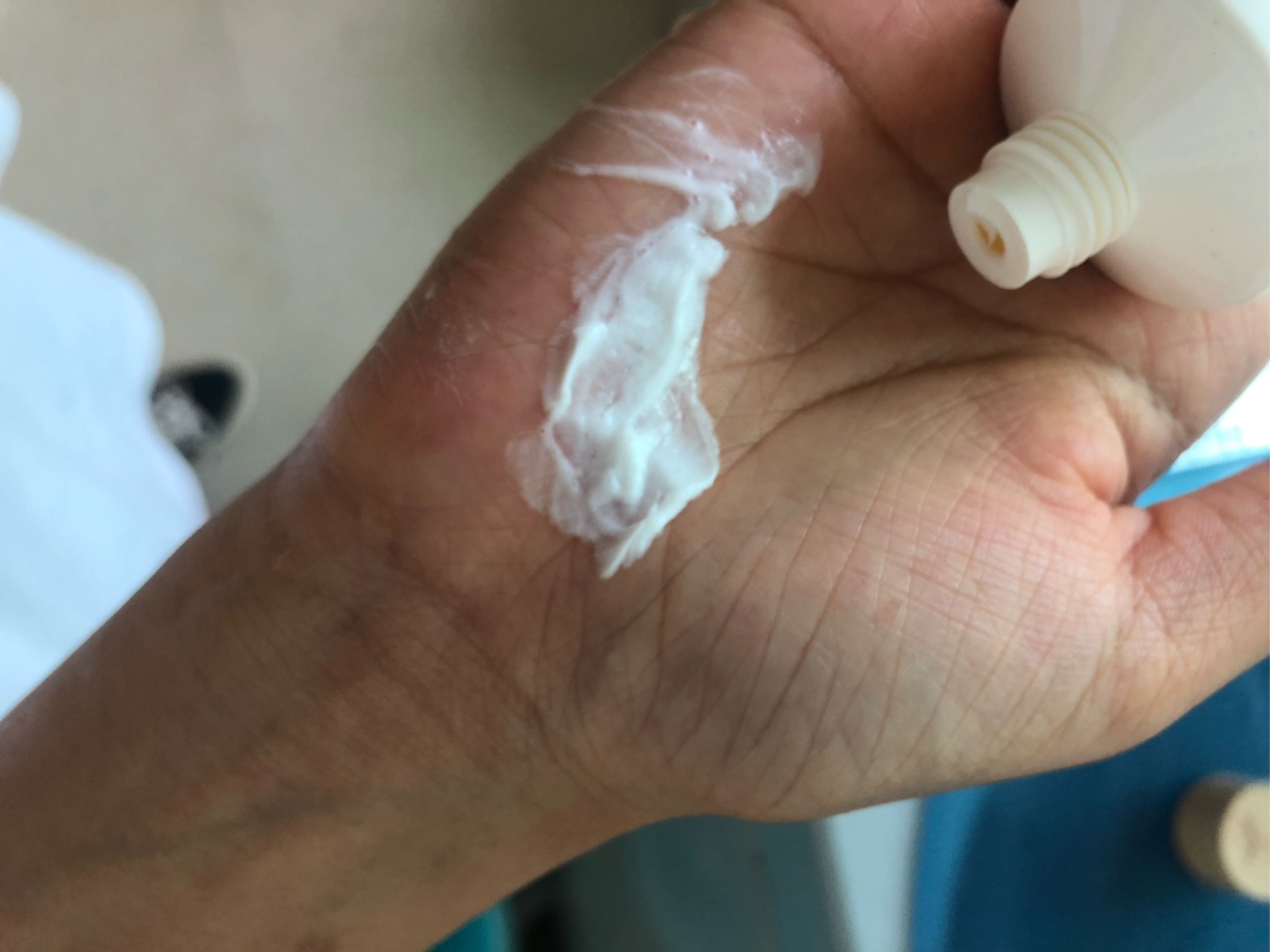 这是放在手上打散后上脸的样子,可能是不够湿所以才是这样吧