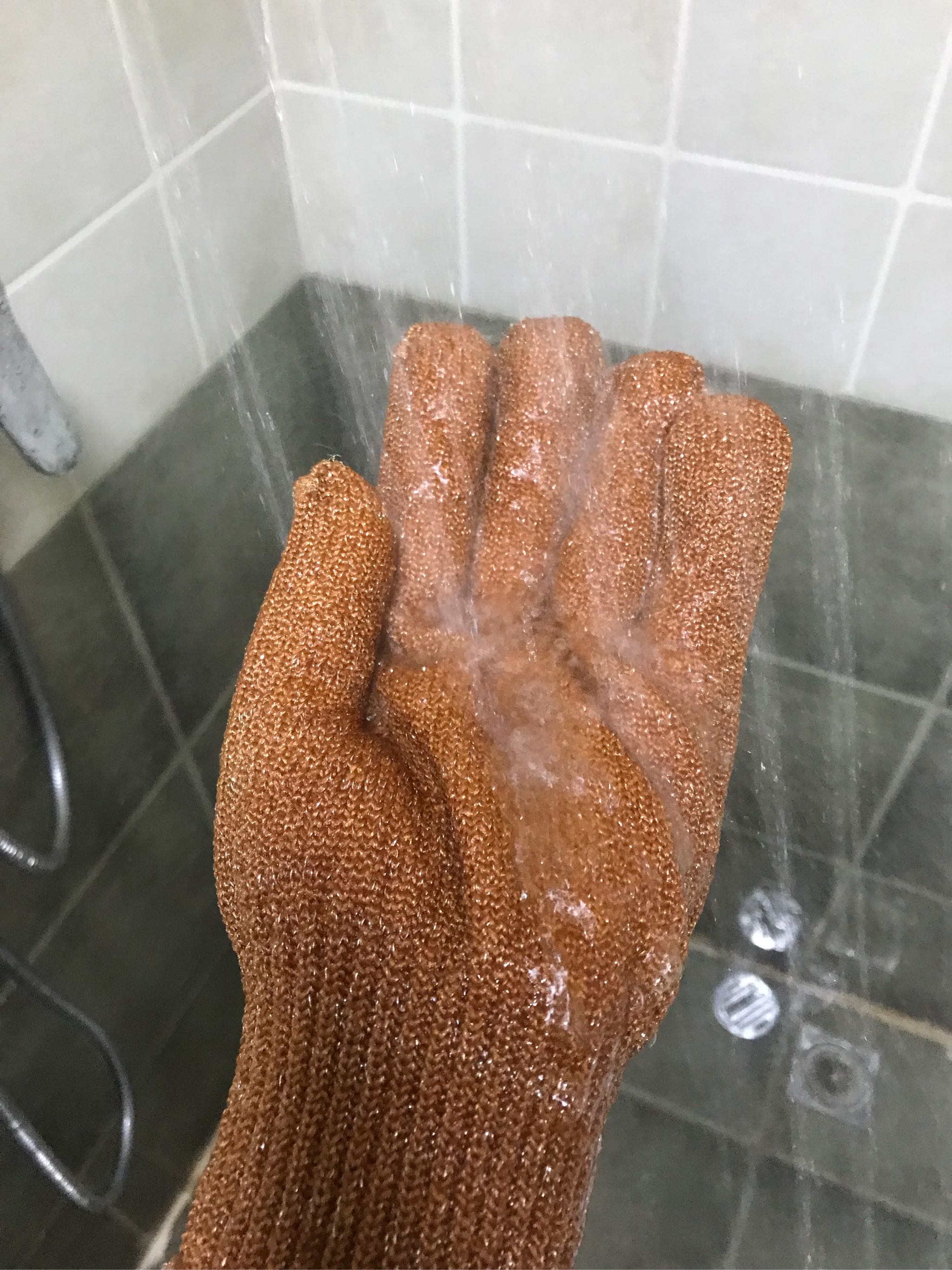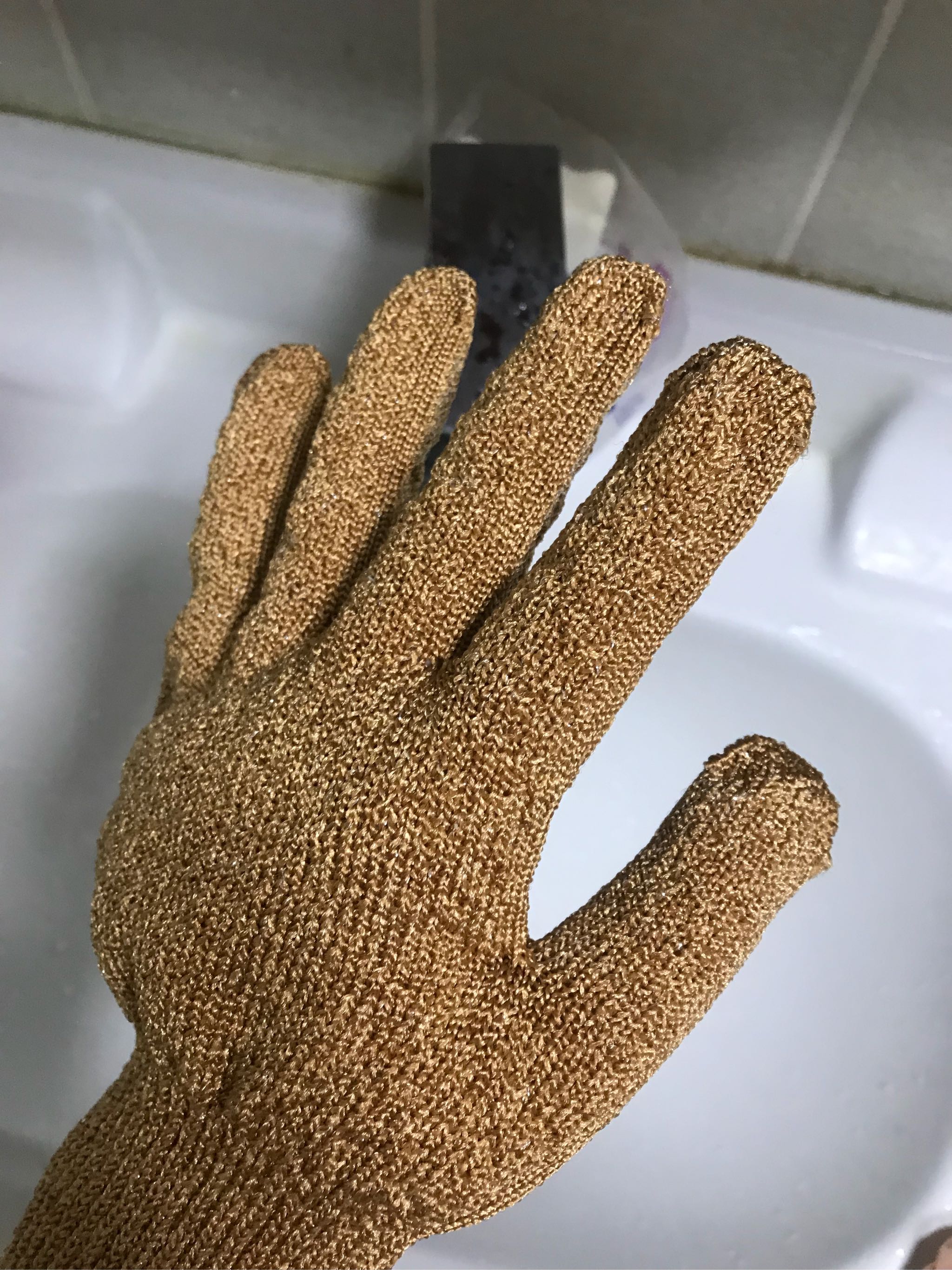优点:手套合手,每天洗澡都可以深度挠痒,但又不像每天用搓澡巾搓,伤皮肤!这个打上沐浴露来搓,有效去除死皮~