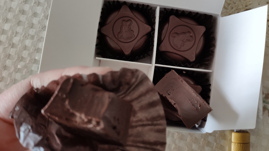 其貌不扬的小小夹心巧克力吃起来味道还不错,入口丝滑,甜而不腻,有香气回味!