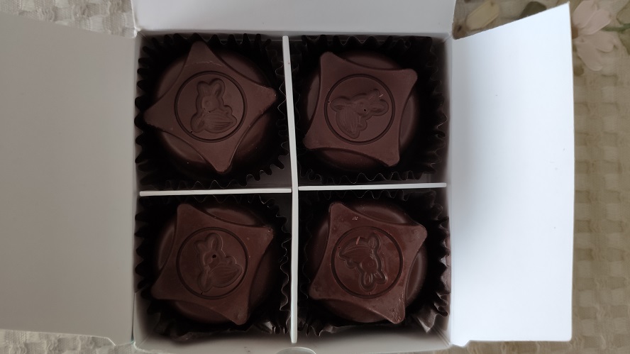 一盒月饼内装4小块,小小的很可爱,月饼的可可含量为57%!