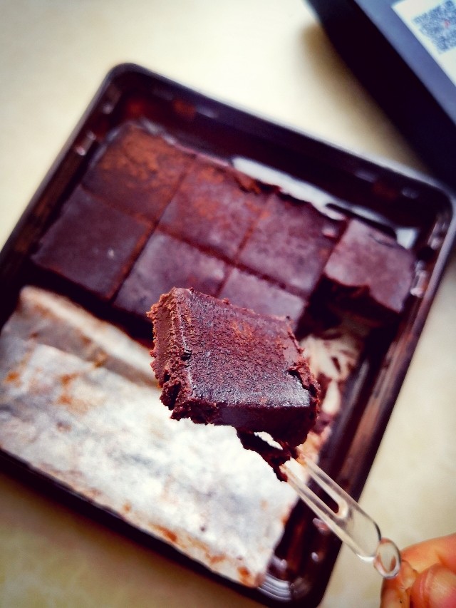 这次拿取比较成功,是因为已经冷藏几个小时了,不建议冷冻。生巧我并不清楚,但是一般巧克力的制作过程中是一定不能放冷冻的。