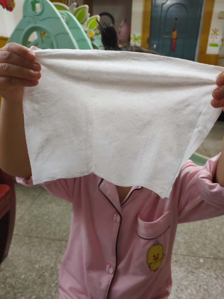 我用了以后个人整体感觉: 类似湿纸巾,不过不会像湿巾纸那么潮湿 ,湿度正好,不会很干也不会过湿,纸质相对我用过其他的产品柔软一些,厚度也正好,主要里面没有酒精,用起来的话比较放心一点。它的材质是原生木浆,用完直接丢马桶也没关系的,不用担心会堵马桶哦,方便又省心。
