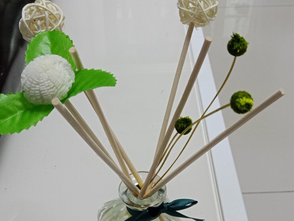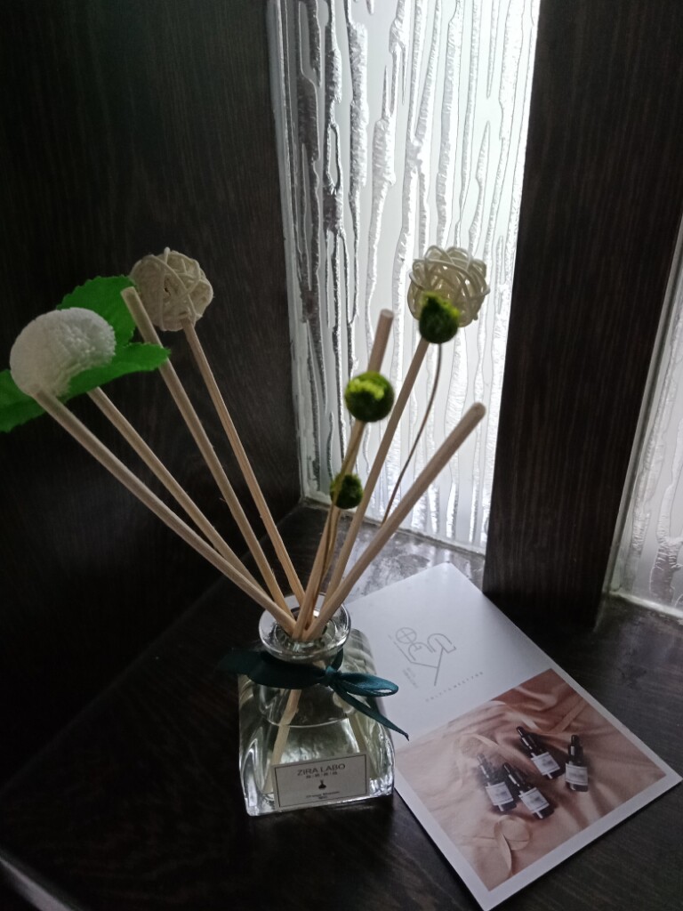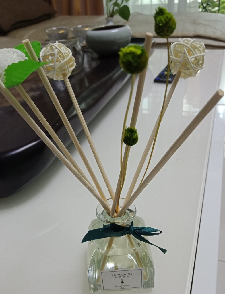 非常好闻的植物桂花味道,和一般的香薰不一样,这个沾在手上也不会有一点刺激,没有劣质香薰贴近闻就会刺鼻的那种,而是很清雅自然,很高级的香,还有一款橙花香薰也炒鸡好闻,甜香不腻,凑近闻都是沁人心脾,而且瓶身设计和配色都颜值很高,蝴蝶结完美戳中少女心,散香的插棍细节都很赞,五分好评