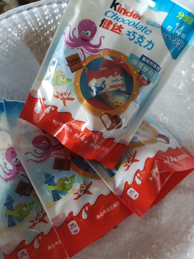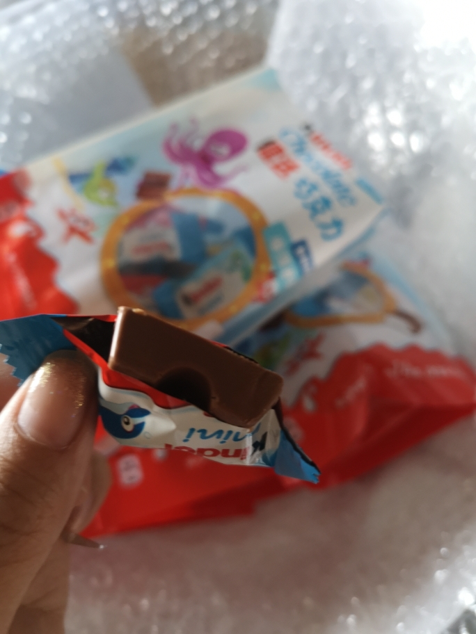 一直都喜欢吃的健达巧克力,迷你型非常方便。一口一个,条装一般会分个两次吃,所以这款给小孩子或者觉得腻吃不了条装的人很合适。虽然甜到牙疼但还是喜欢,特别喜欢里面的牛奶味夹心。