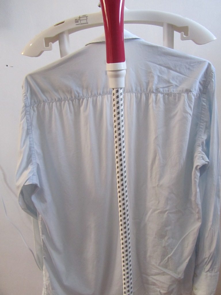 特地将一件熨烫好长袖衬衣再一次机洗了一遍,就为了看一下这效果。衣服的布料为纯棉,洗完之后若不熨烫很皱,为了比较效果,只烫一边!