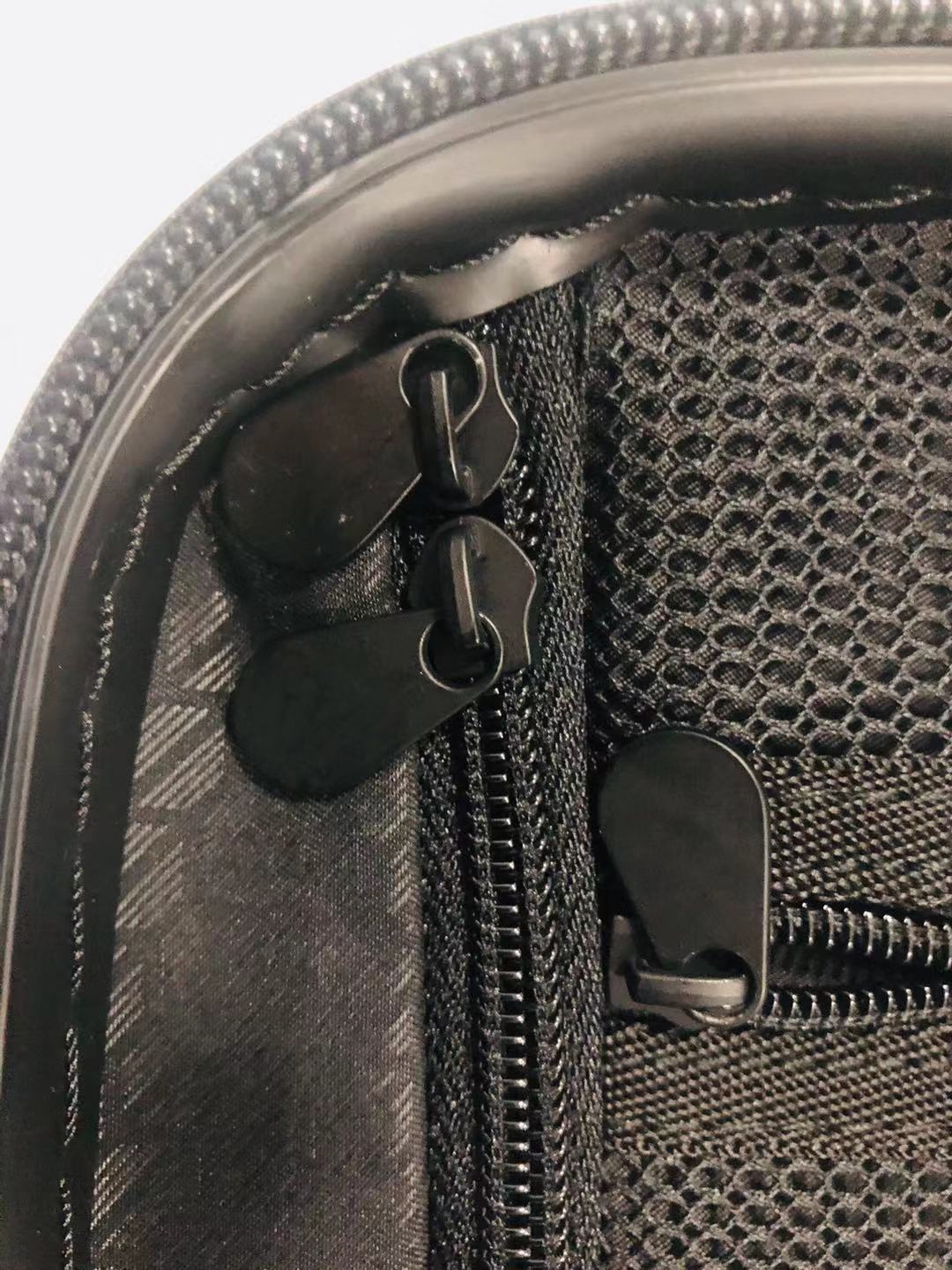 拉链处有柔软的胶条,拉链拉上以后,胶条会覆盖住拉链,不仅美观,而且增加了密封性,最大程度的避免了通过拉链渗水的情况,这种配置在价格低一些的拉杆箱上不多见,很多都是拉链直接裸露在外的。而且完成这种设计其实对这个胶条要求很高,既要相对柔软,又要有良好的反弹性,这样才能拉开再闭合以后,恢复覆盖的状态。
