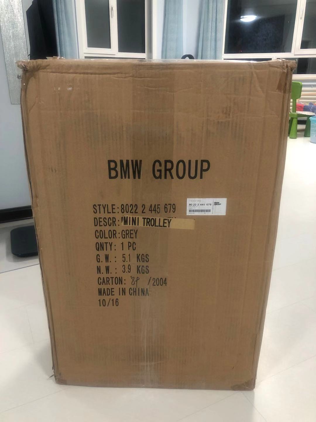 很幸运被抽中试用,从得到抽中的通知一直到收货,大约一周的时间。 因为白天要工作所以快递是请菜鸟驿站代收的,晚上下班一进门就看见这个最大的盒子放在门口,开心的抱回家。 作为MINI品牌9年的车主,历任两款车型(一台开了4年多第二台现在还在开已经5年零一个月),对MINI品牌的文化内涵是很喜欢的,对其周边也很感兴趣,目前也拥有一些健身包之类的用品在使用。 所以对于这次拉杆箱的试用,我也是充满期待和担心,期待的是又多了一款我热爱品牌的周边,担心的是,看到它原价,我很担心溢价太高,性价比不足。 迫不及待的打开了以后,发现其产品整体基本上消除了我的顾虑,做工与质感都可以与同价位的新**品牌媲美。从包装到内里的设计,都让人觉得有细节,很用心。