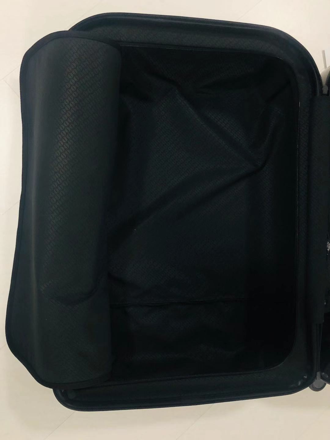 以前经常出差也购买过四五只拉杆箱,内衬是微绒质感的箱子是第一次遇到,以前买到的都是滑滑的,估计也为了好清洁的缘故。这款拉杆箱的内衬有暗纹的LOGO与箱体呼应,手感摸上去不是滑滑的凉凉的,而是微微起绒温暖柔软的感觉。优点是手感特别舒适令人愉悦,缺点也许是不耐脏,因为不防水所以不太好清洁。
