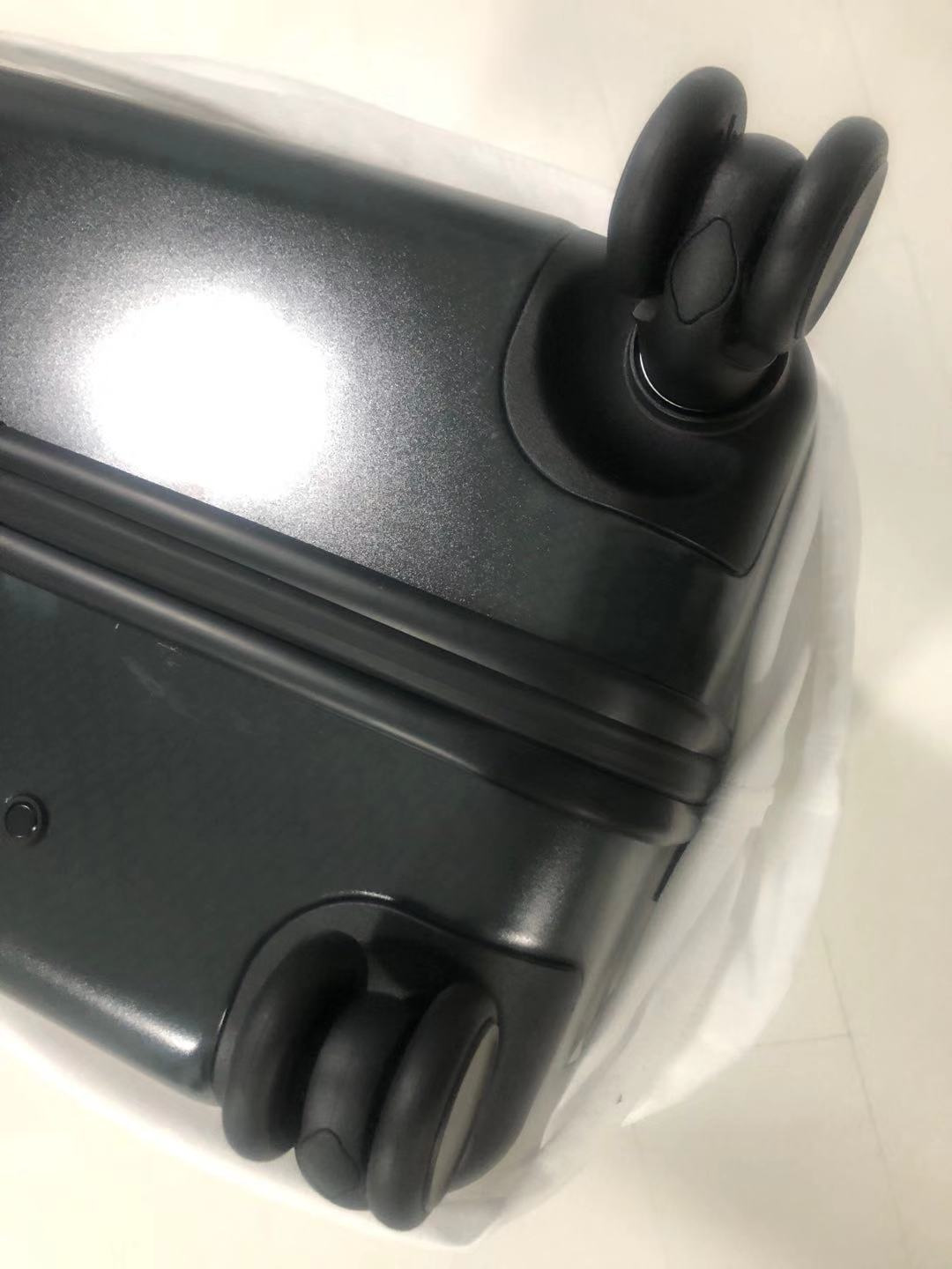 万向轮光滑灵活,对得起它的价格。轮子与箱体略有距离,在斜着拖拽的时候也不会“磕底盘”,细节用心了。箱体光滑,平整,外部与内衬的纹路一致。