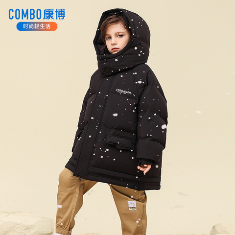 康博中大童儿童中长款羽绒服冬季新款男童宝宝连帽洋气宽松厚外套