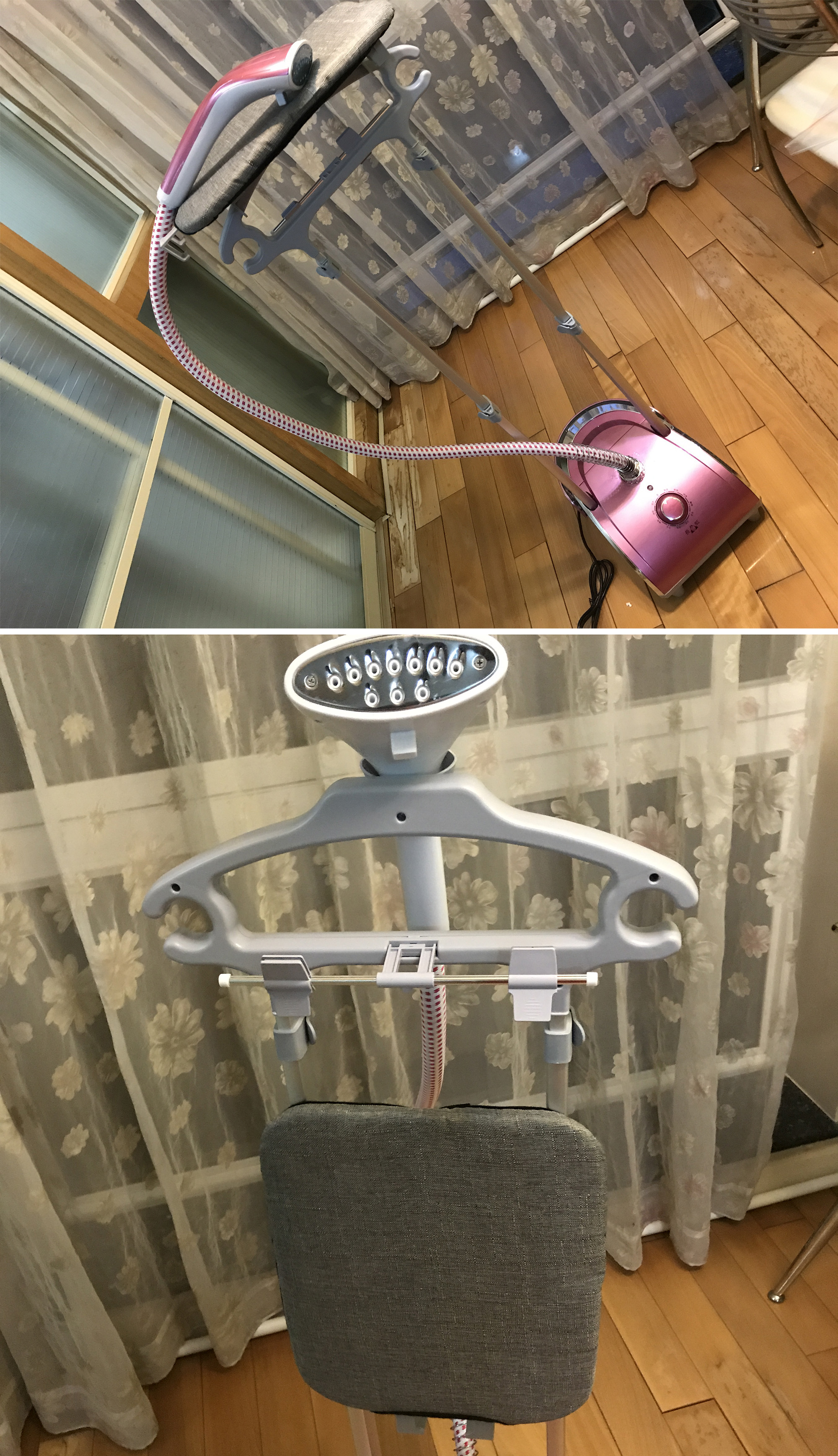双杆的设计非常稳固,不会像单杆的那种容易左右晃。杆子可以调节长短,非常方便好操作,各种身高使用都不会有问题,而且调节矮了坐着熨烫也可以,对于我这种懒癌晚期的人来说真的再合适不过啦。另外带有衣架和可可调节的裤架,细节的设计上十分实用。