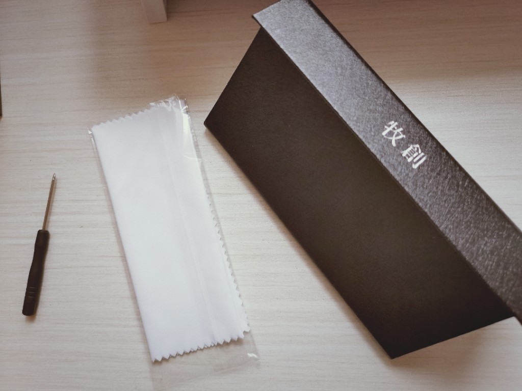 配件有眼镜布,调整松紧的小改锥,还有眼镜盒!
