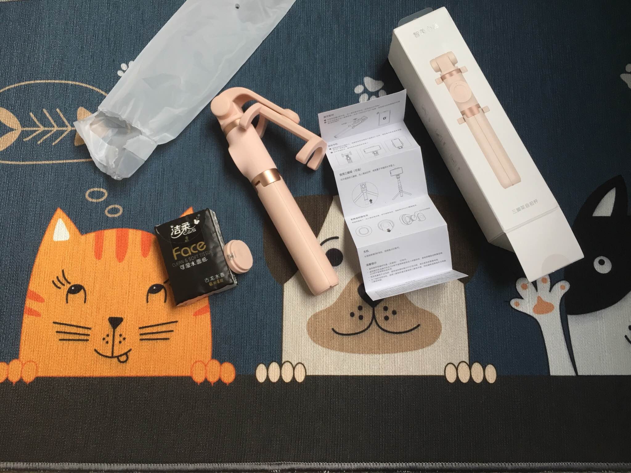 原来的自拍杆都是那种线控的,远远的只能握在手里,这个蓝牙美滋滋的可以脱离一米的范围架着已拍又自然了,电池是纽扣电池,未使用是带着塑料隔膜的。