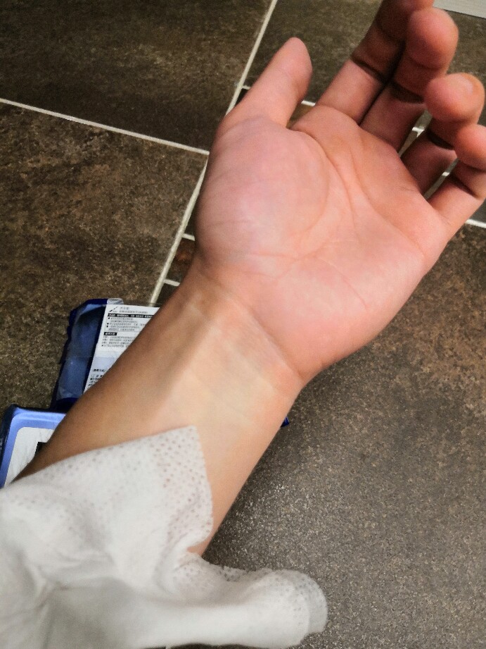 湿巾的湿度还是非常高的,擦过以后手臂上凉凉的。