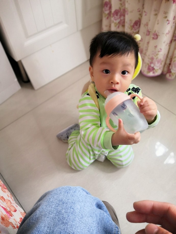 缺点:瓶身较大,奶瓶虽然可以安装扶手,但是我的宝宝还是喜欢直接拿瓶子使用,瓶身能修身就更完美。我家宝宝老喜欢拿奶瓶玩,摸滚爬后硅胶容易吸附,这个也是硅胶奶瓶通病。