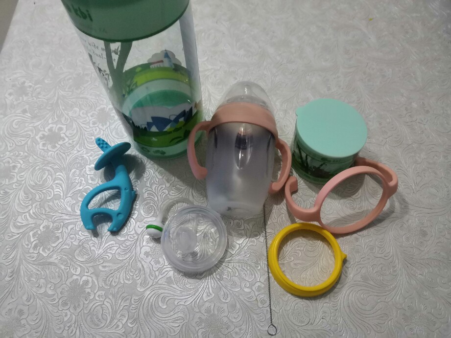不错的可喝奶、喝水两用硅胶奶瓶,奶瓶和配件齐全,并且有管刷,2套奶嘴,配备有塑料小盒,便于携带奶嘴。奶瓶没有气味,奶嘴柔软,奶嘴盖上有出气孔,吮吸不费力。