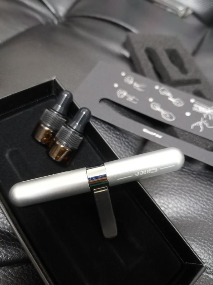 拿开卡纸。就可以看到附赠了两个小瓶装的香薰油。味道个人不是很喜欢。