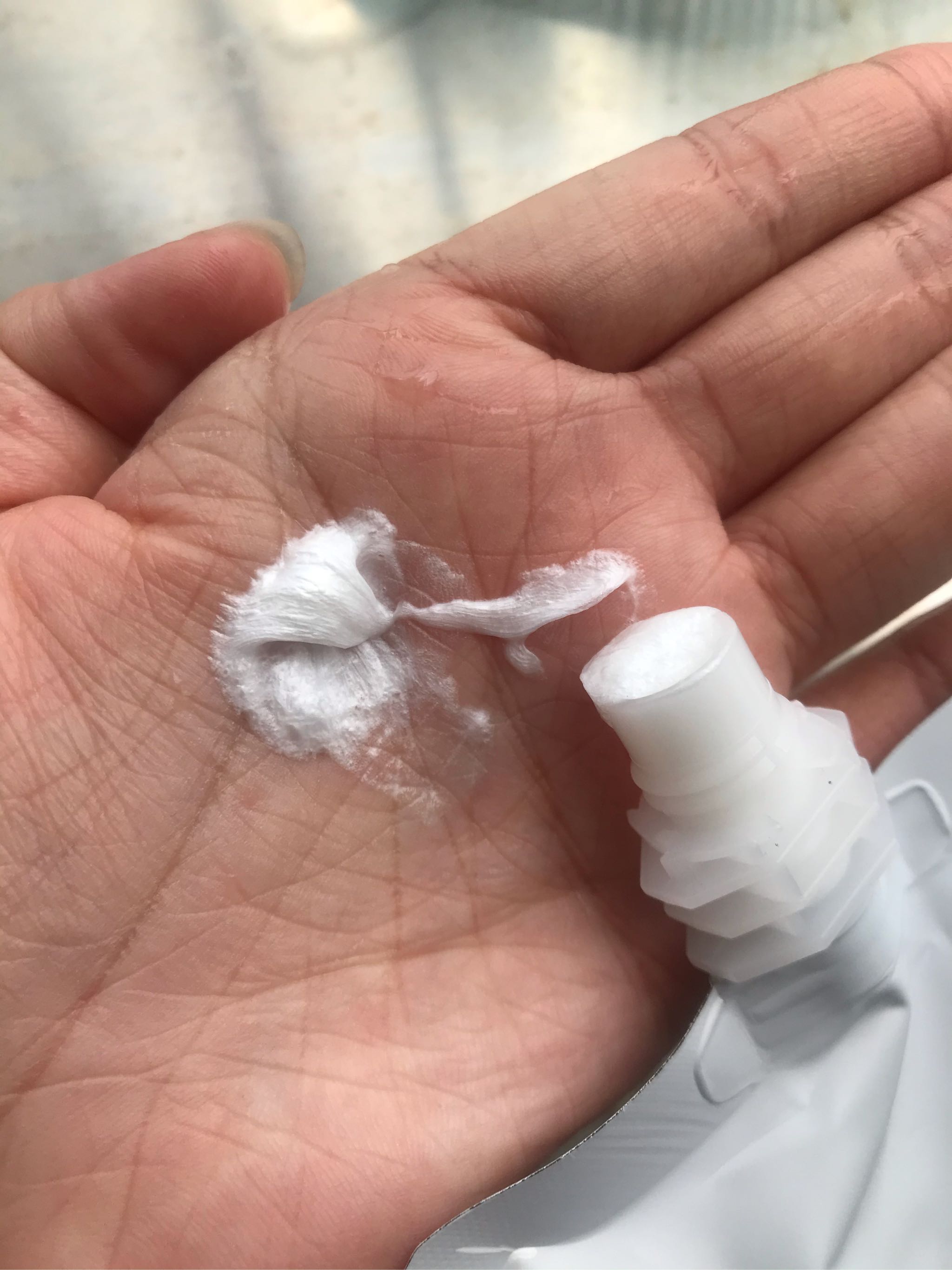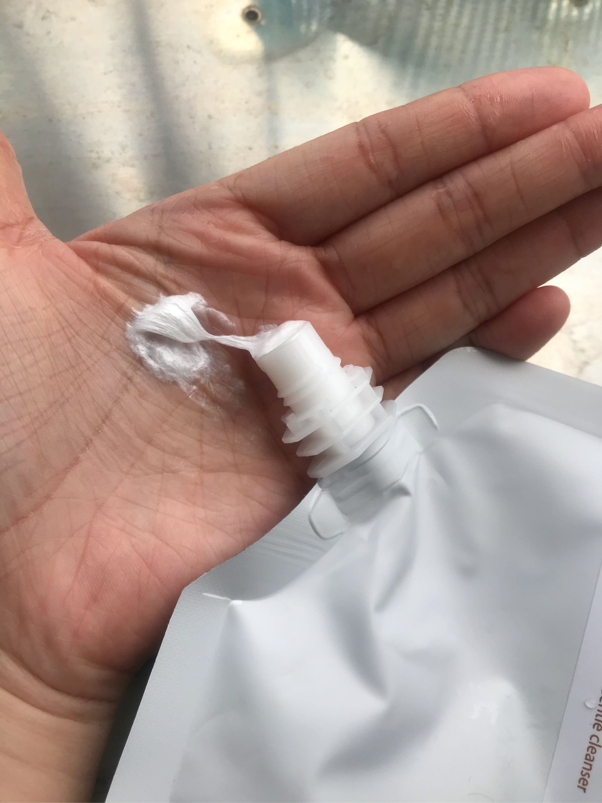 洗面奶是正常的,亮白色方便起泡的那一种,摸起来挺舒服的