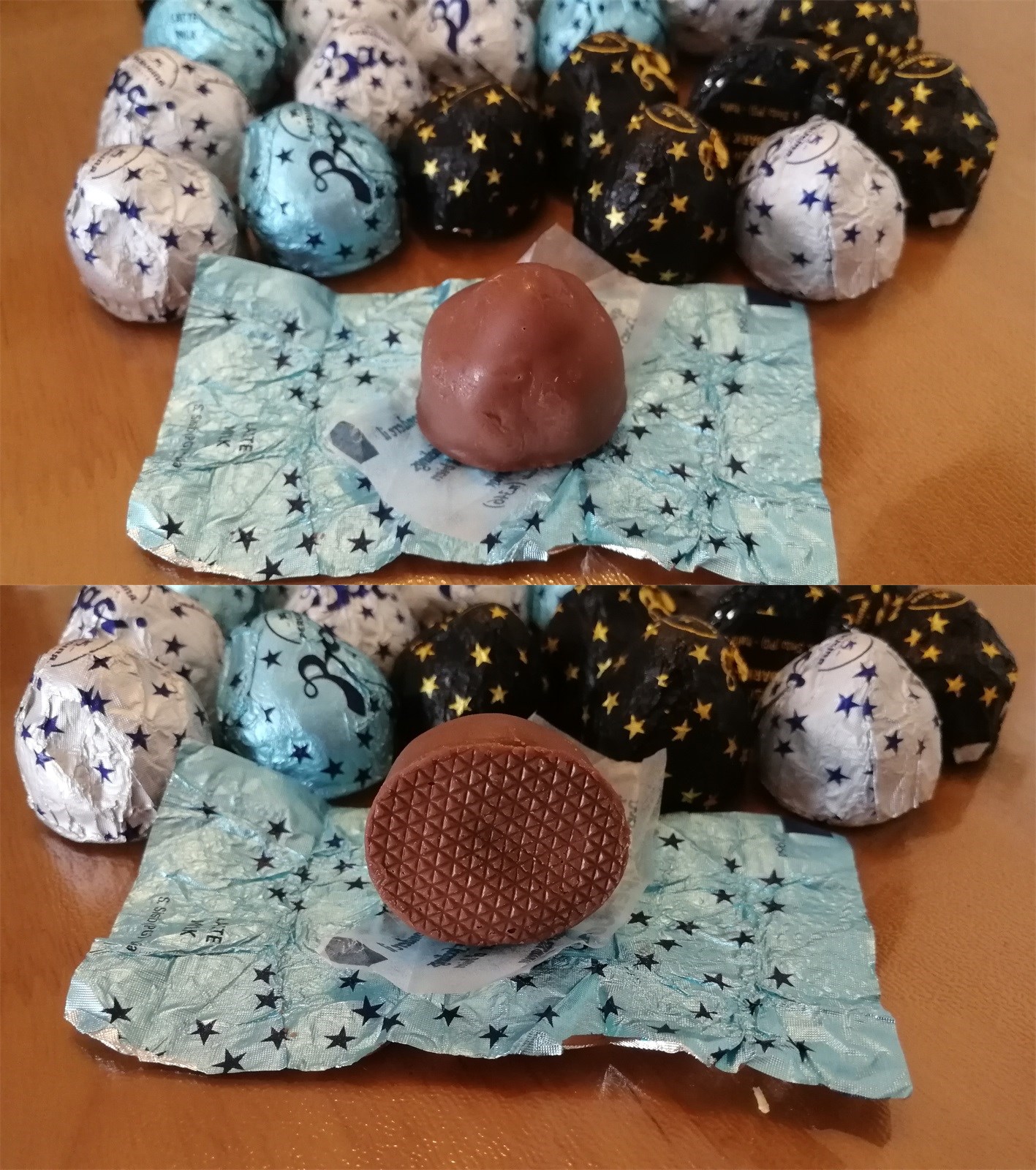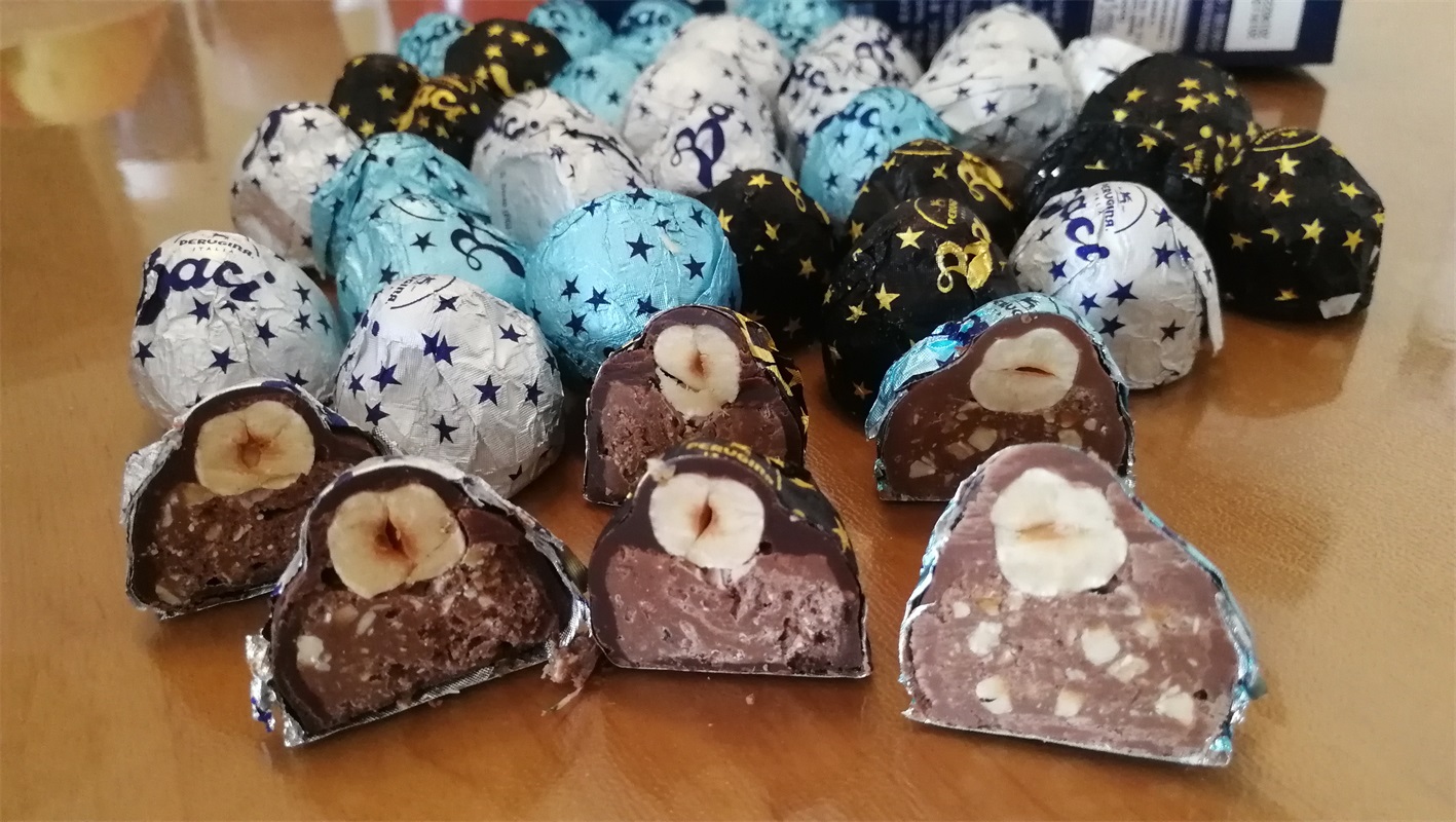 浓醇的巧克力外衣下有一颗完整榛仁,榛仁酥脆,巧克力口感丝滑香味浓郁,尤其是黑巧克力略带苦味,非常好吃。