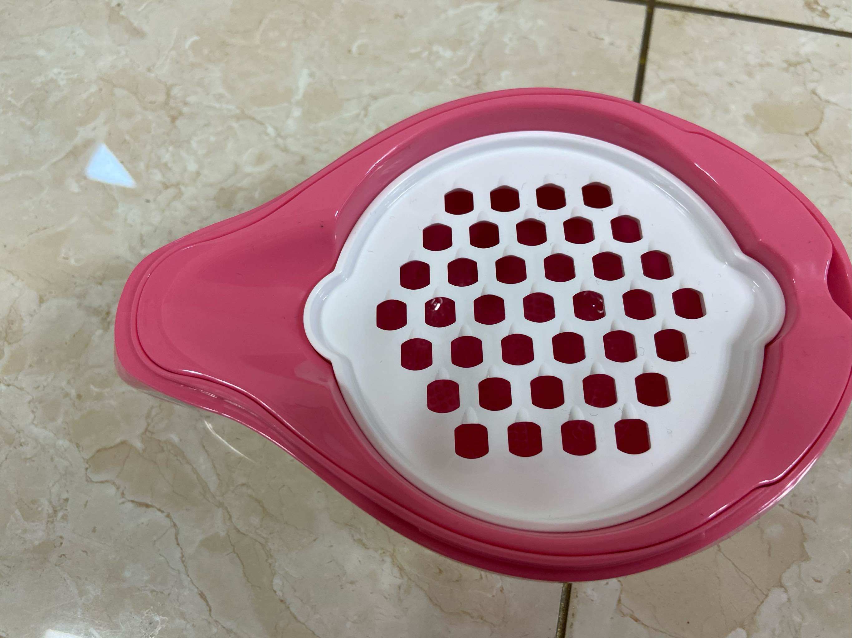 细研磨板,适合吃辅食不久的宝宝,这个用的时间也会比较长,苹果泥,胡萝卜泥啥的,前期用的比较多,可以放到米粉里面配合使用。