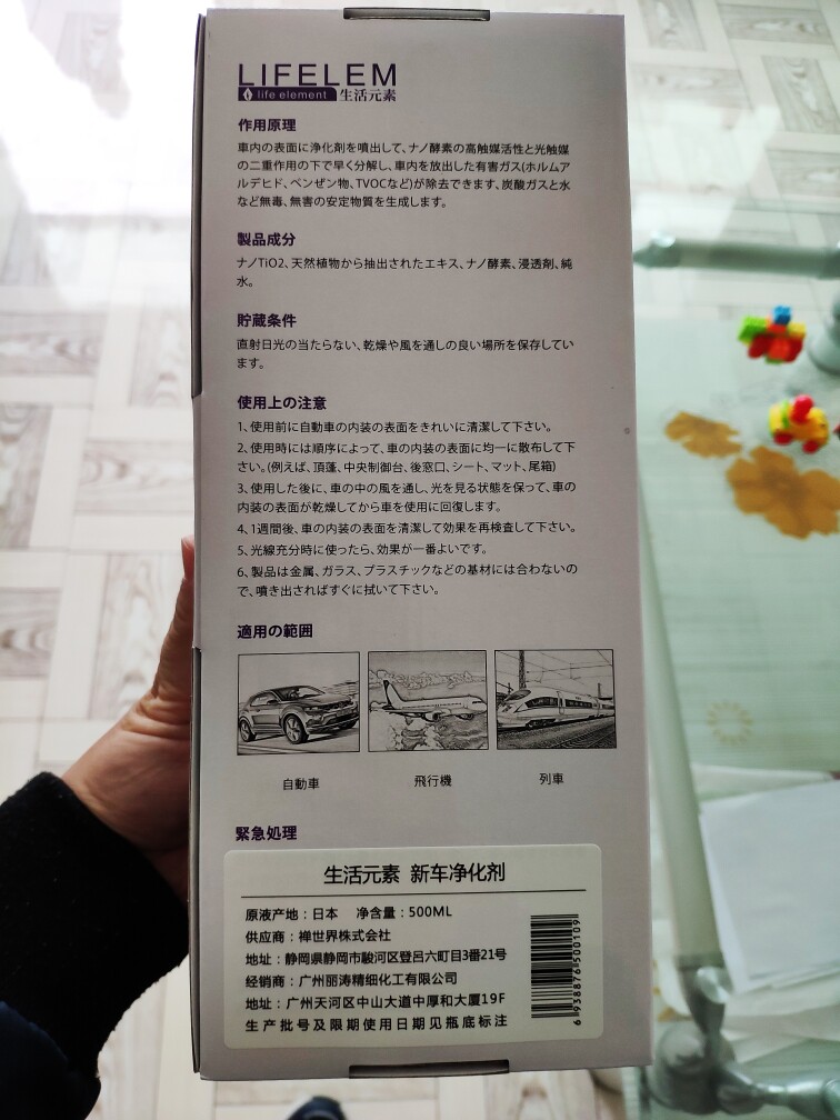 优点:包装很精致,看着很高端,店家还贴心的送了工具包和使用说明书,安装上喷头就可以使用,日本进口,无毒无害,用着很放心。用了之后明显感觉没有味道了,以前在车里待久了感觉头都有点疼,现在感觉好多了,建议用之前好好清理一下内饰,有的地方可能是没清理干净,会留下一小点痕迹。建议找一个天好的时候用,用完晾着就好了,喷头设计的也很好