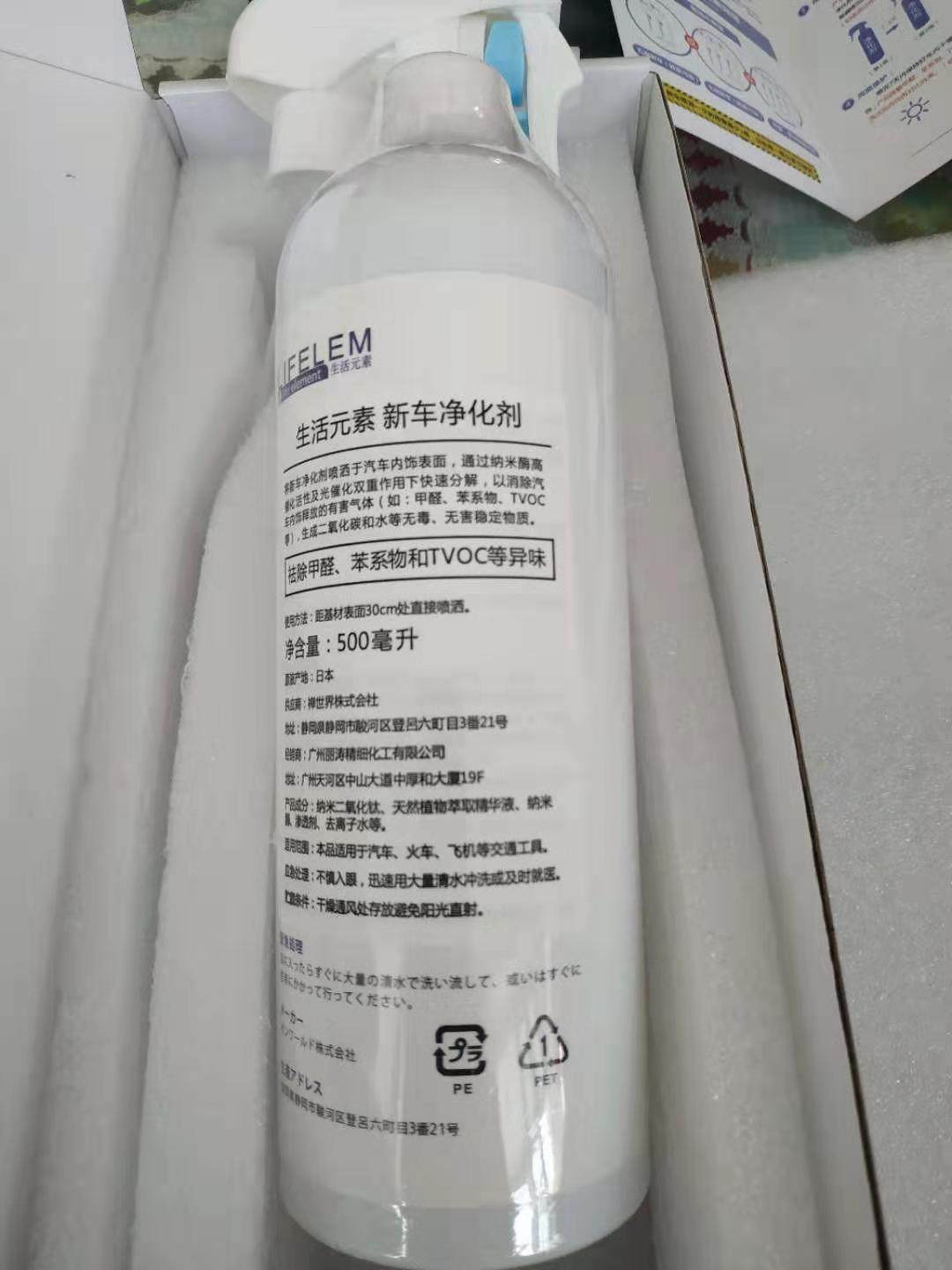 优点:我安装好喷嘴后,自己亲自喷自己的爱车。在自己车内全方位360度均匀喷洒,安照说明书进行。每一个点安喷头2-3下,安顺序均匀喷洒至车内饰表面。感觉味道吧是那么的弄,用一种特别好闻的花香的味道。 过了今天又用了不错的。