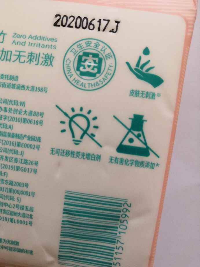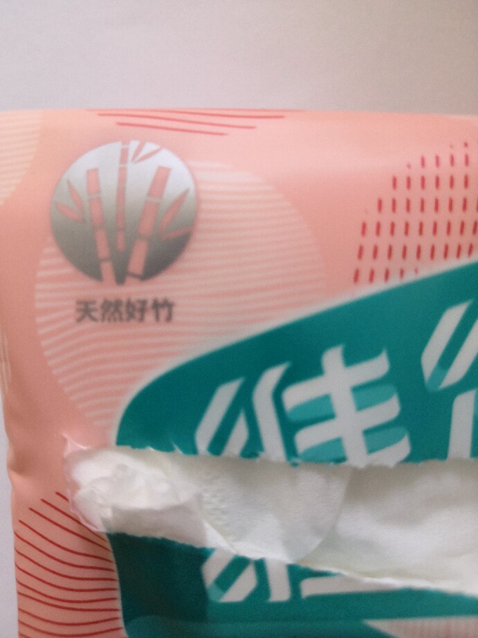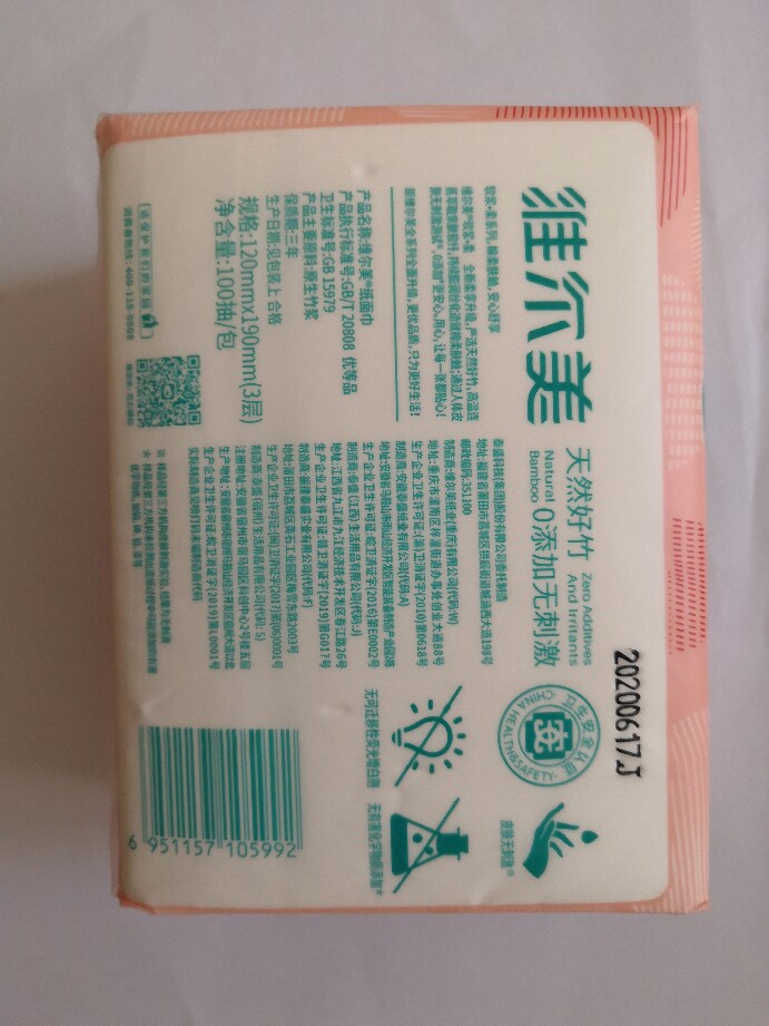 侧面清晰的绿色图标直接标明品牌纸巾制作材质以及抽纸的型号,一目了然