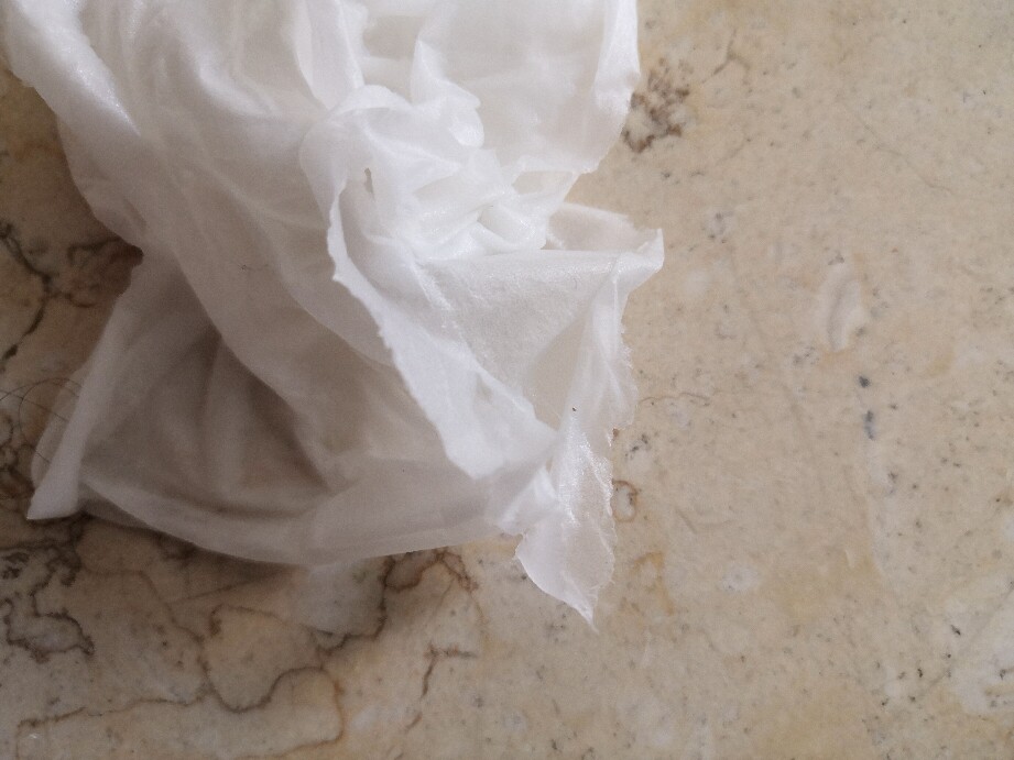 沾水之后的效果,更明显的感觉到纸巾的薄而透明了