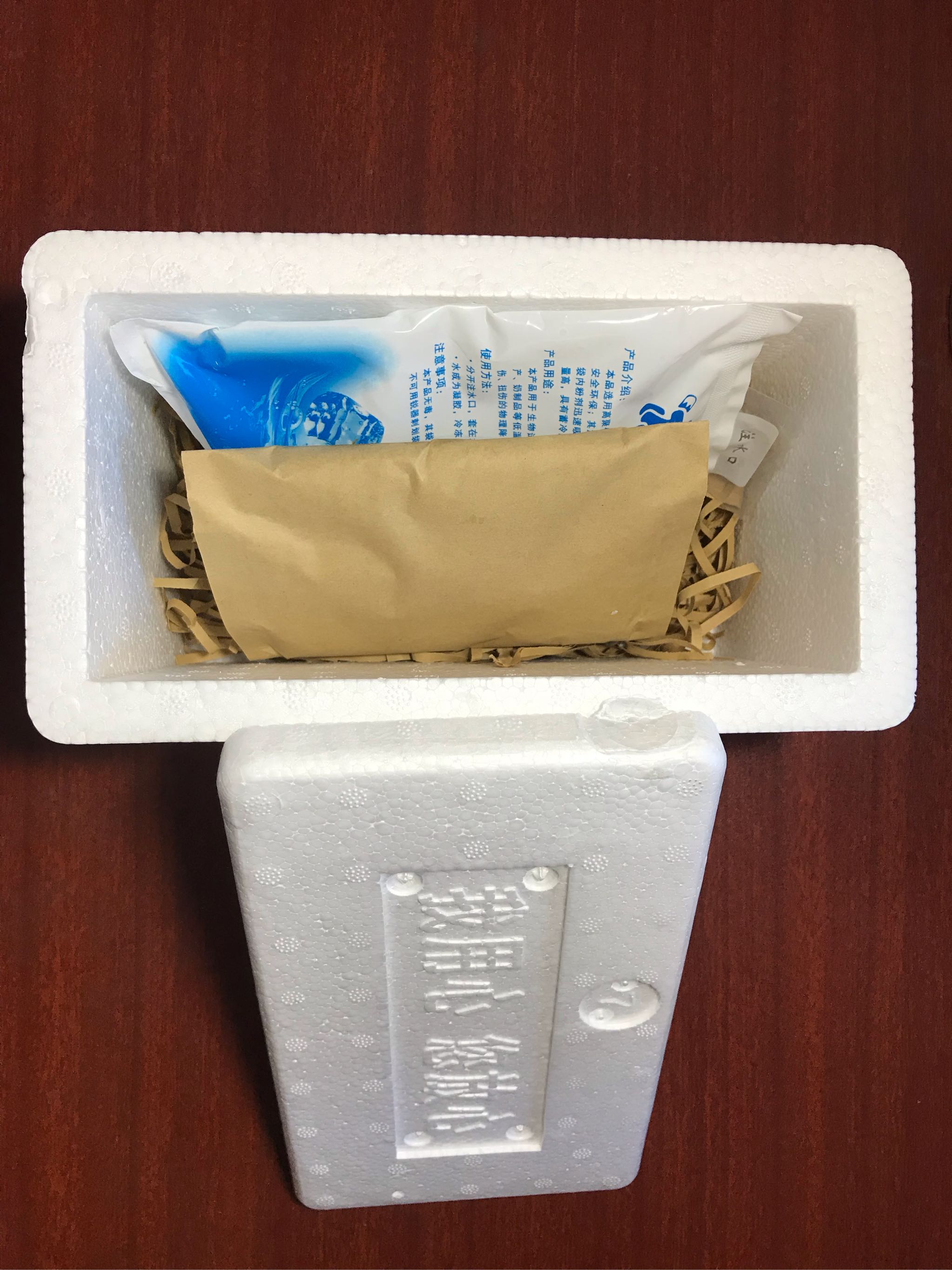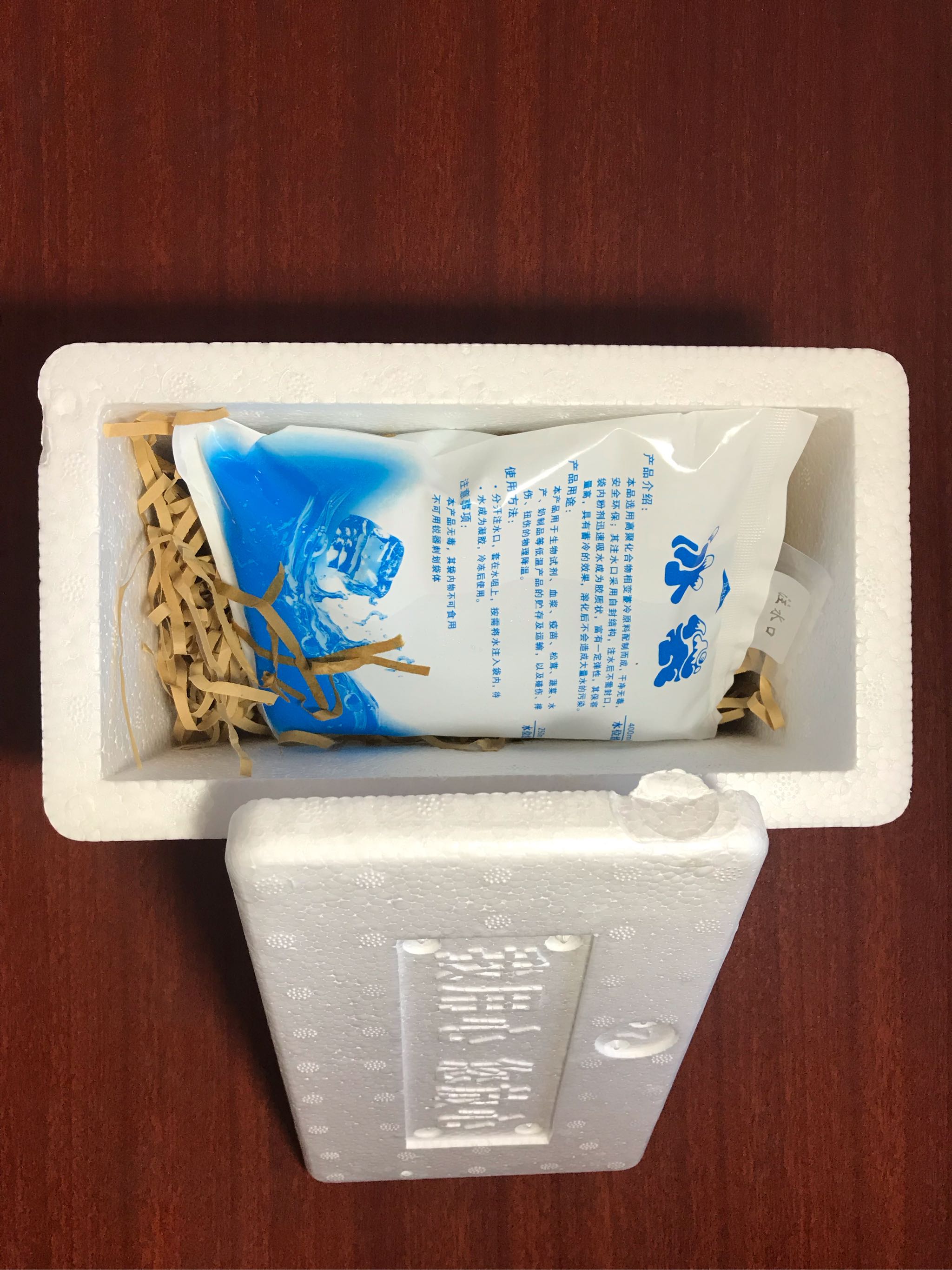 泡沫箱里有碎屑和冰袋降温保存,当地气温27度左右,收到包裹的时候冰袋还有冰冰的感觉